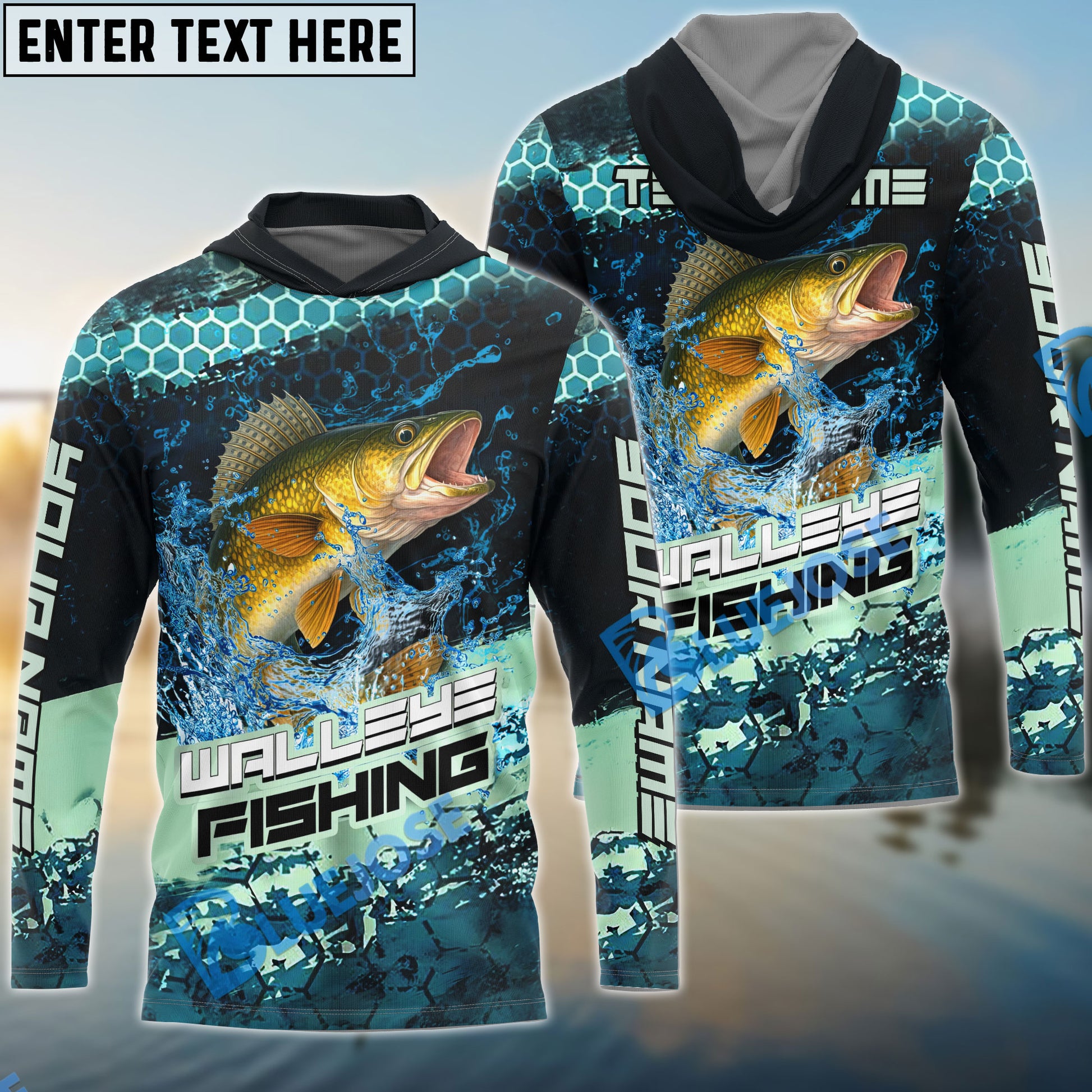 Bluejose Walleye Fishing Aqua Strike Custom Name & Team Name 3D Shirts