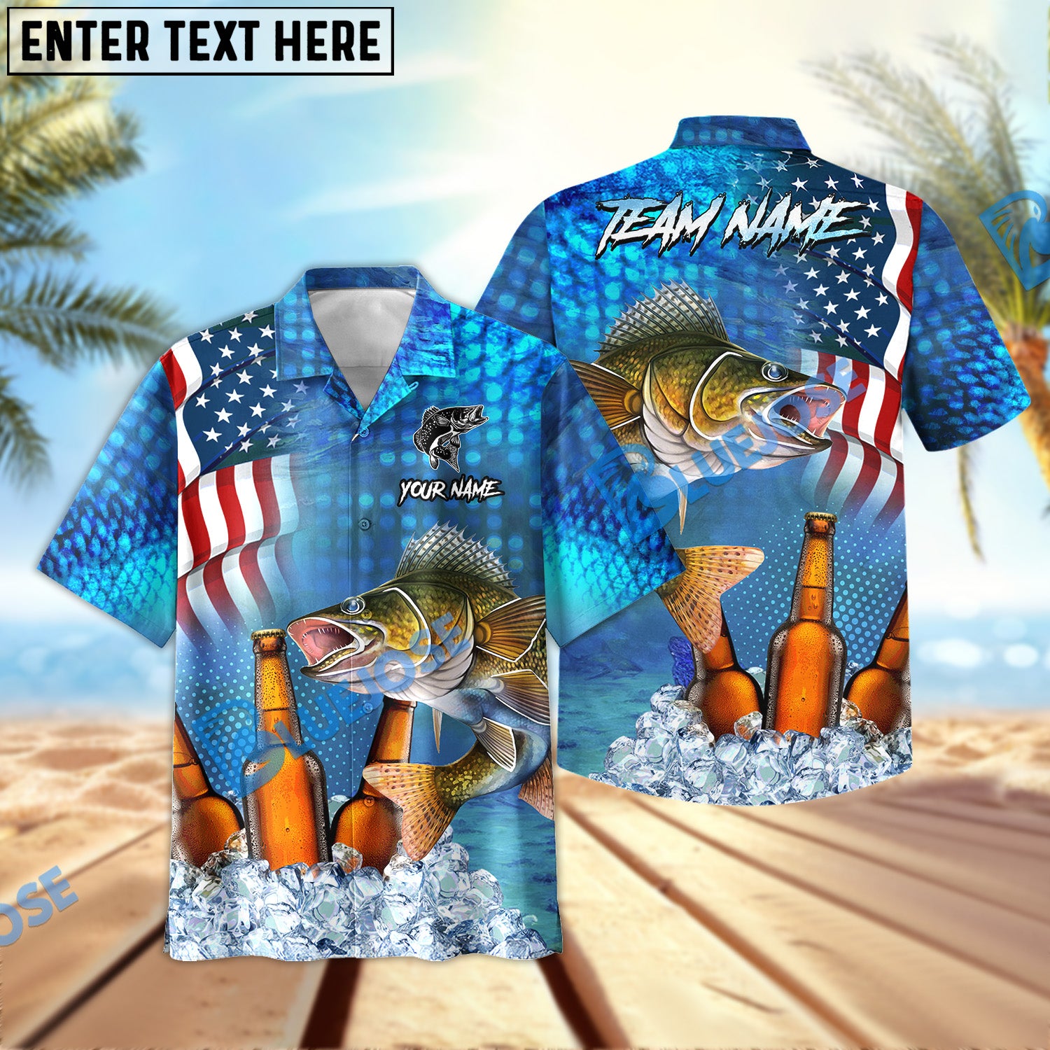BlueJose Walleye Fishing Beer USA Flag Personalized All Over Print 3D Hawaiian Shirt