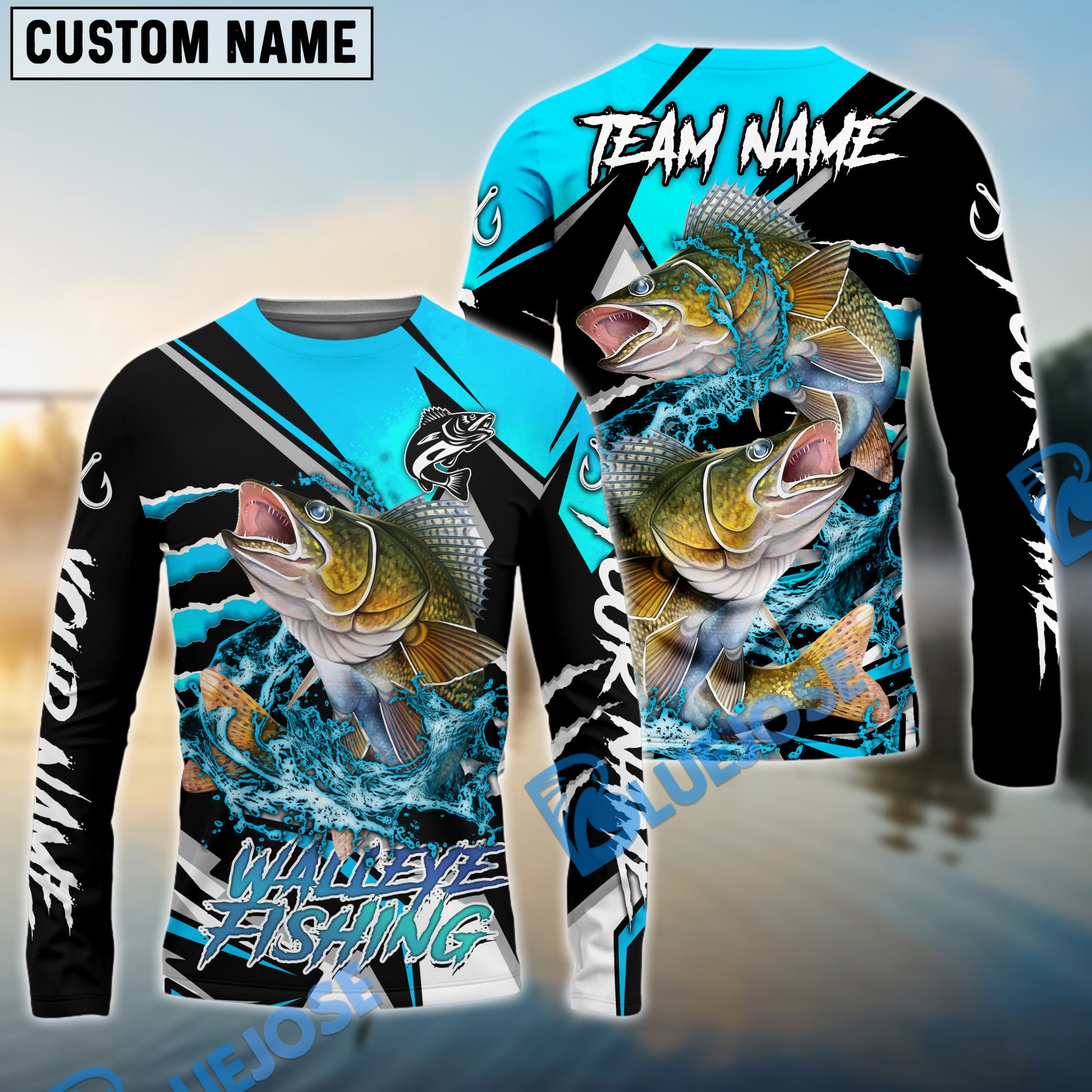 Bluejose Walleye Fishing Black Blue Scratch Sport Custom Name & Team Name 3D Shirts