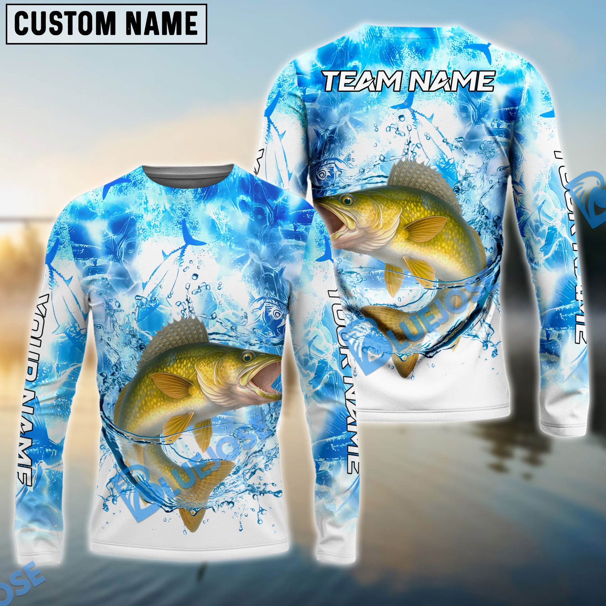Bluejose Walleye Fishing Blue Sea Catching Design Name & Team Name 3D Shirts