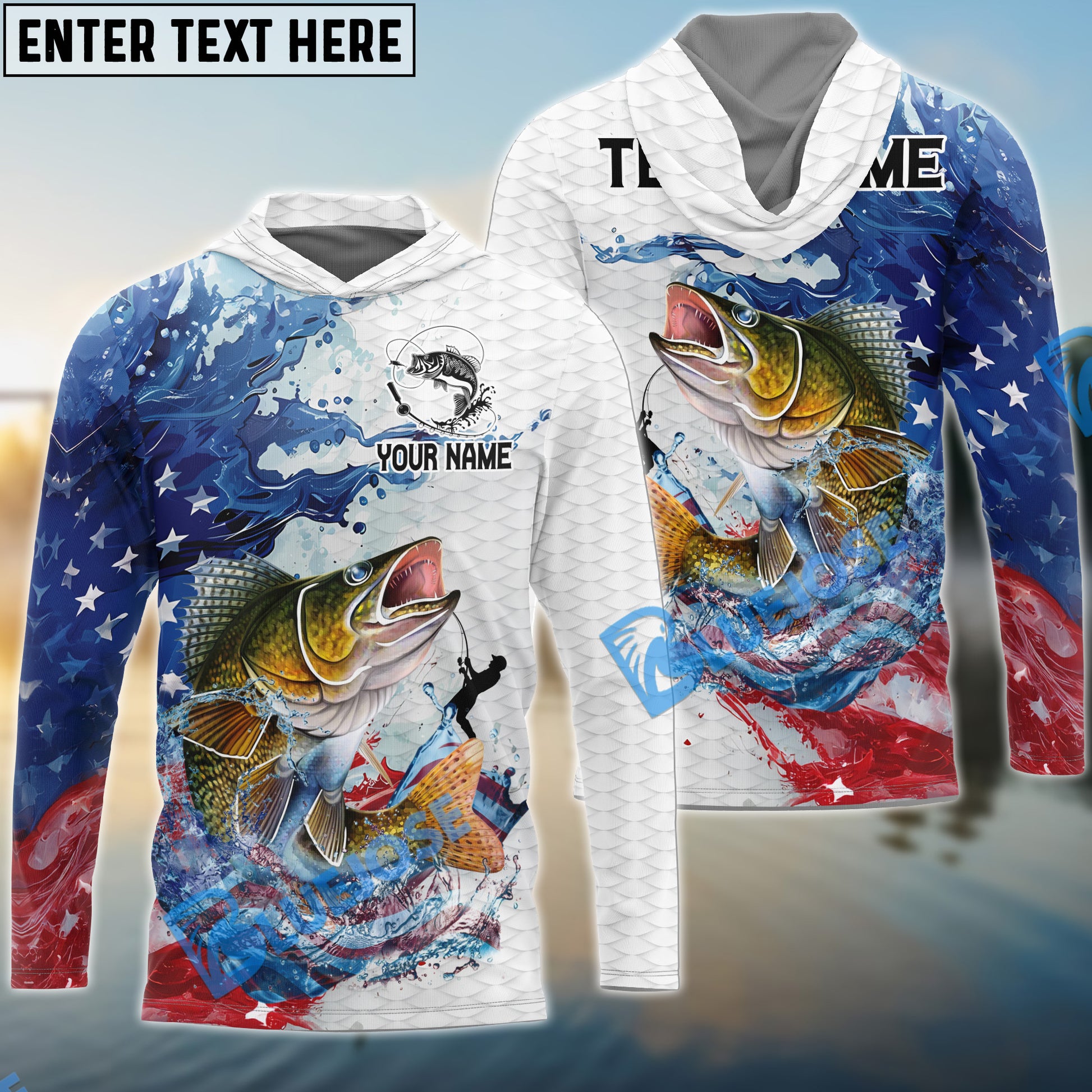 Bluejose Walleye Fishing Patriotic American Flag Wave White Skin Custom Name & Team Name 3D Shirts