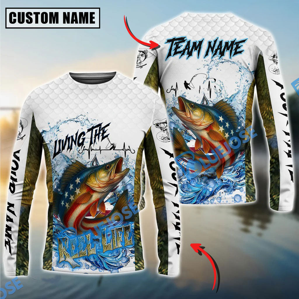 Bluejose Walleye Fishing Patriotic Reel Life Design Custom Name & Team Name 3D Shirts