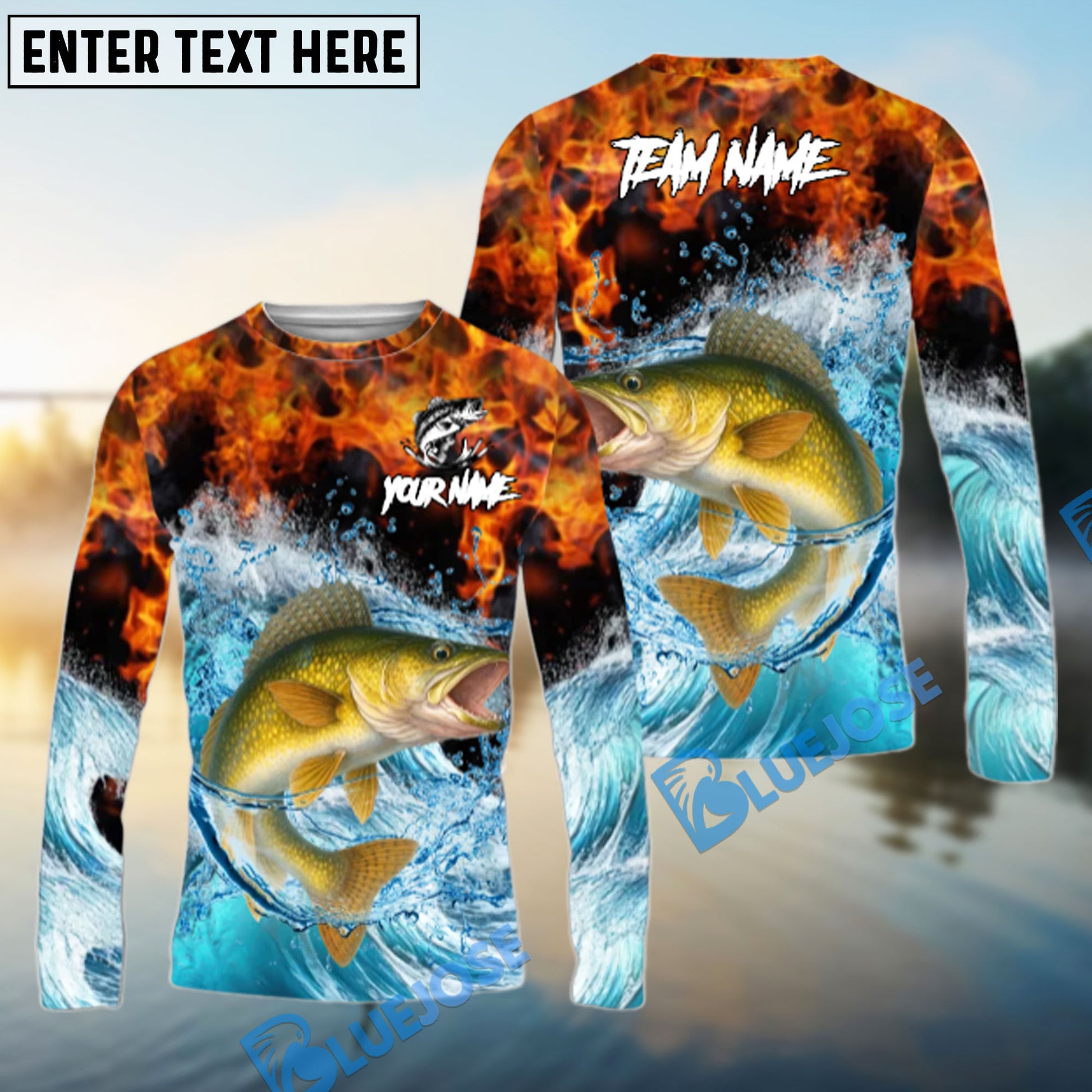 Bluejose Walleye Fishing Sea Fire Design Name & Team Name 3D Shirts