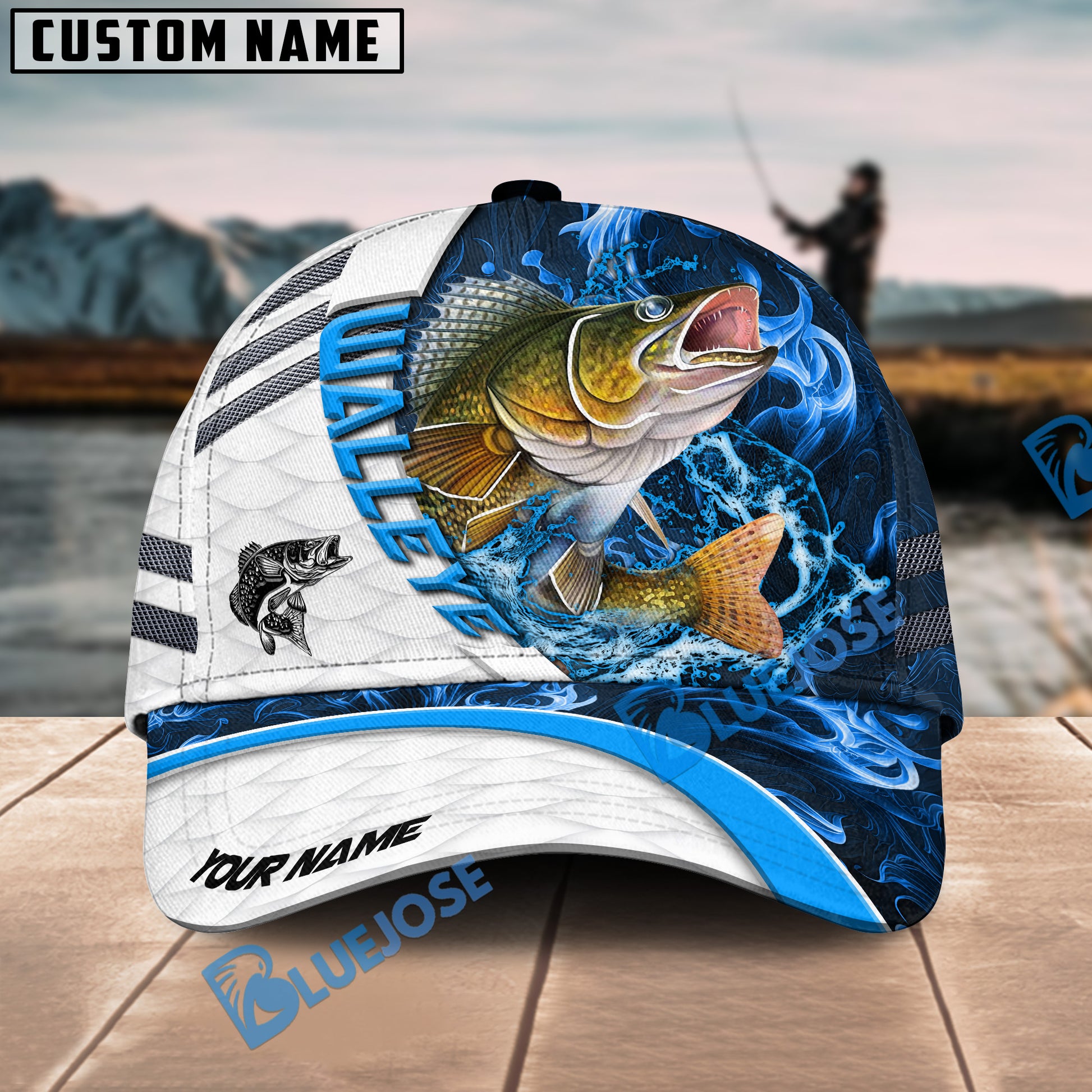 Bluejose Walleye Fishing White Blue Lava Sport Personalized Cap