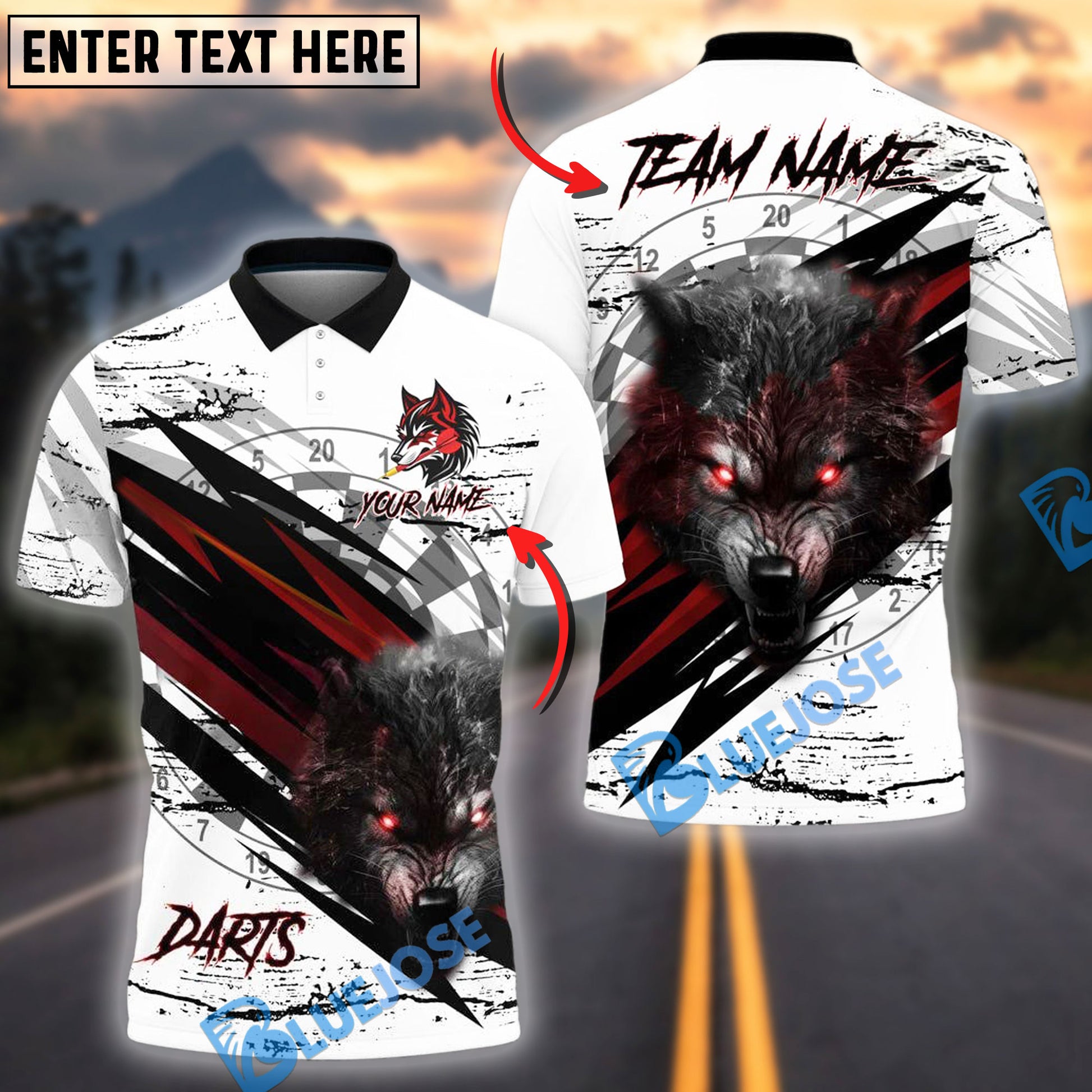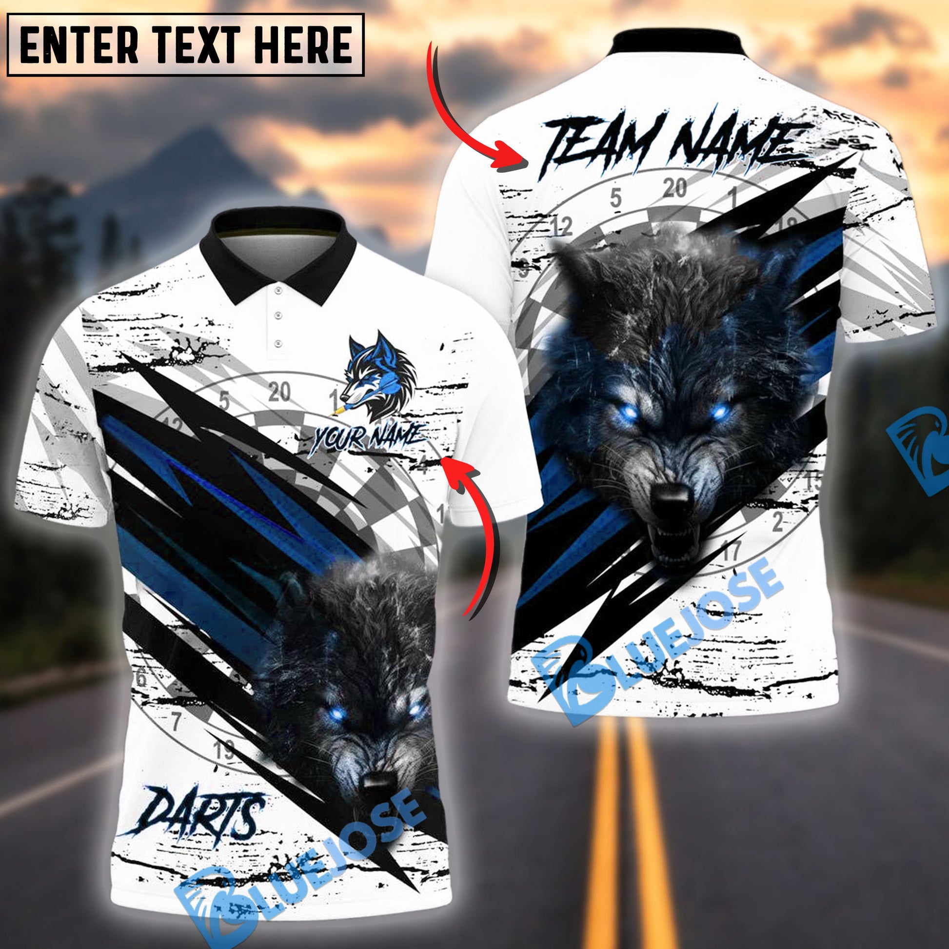 BlueJose Wolf Darts Dartboard Personalized Name Team Name Shirt (4 colors)
