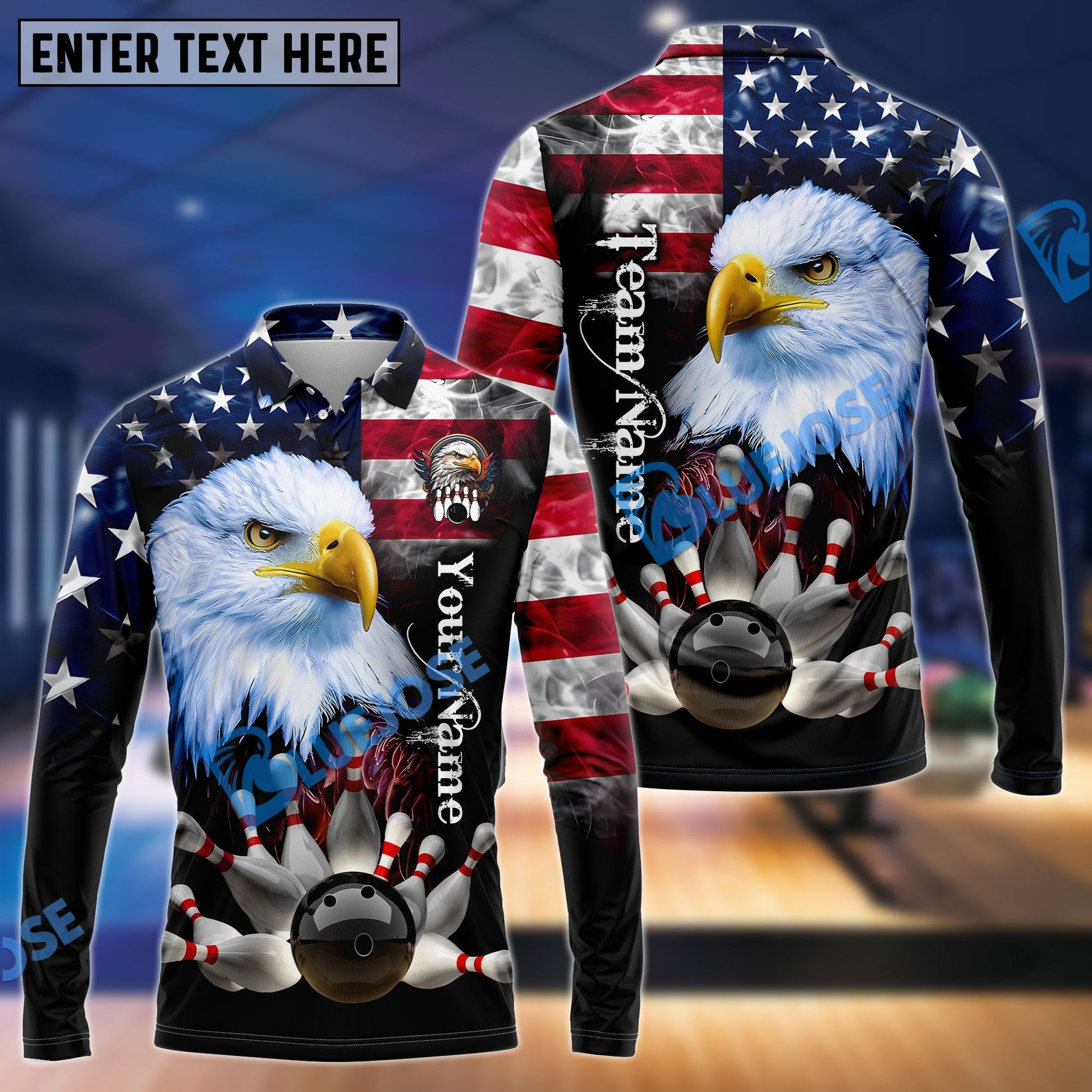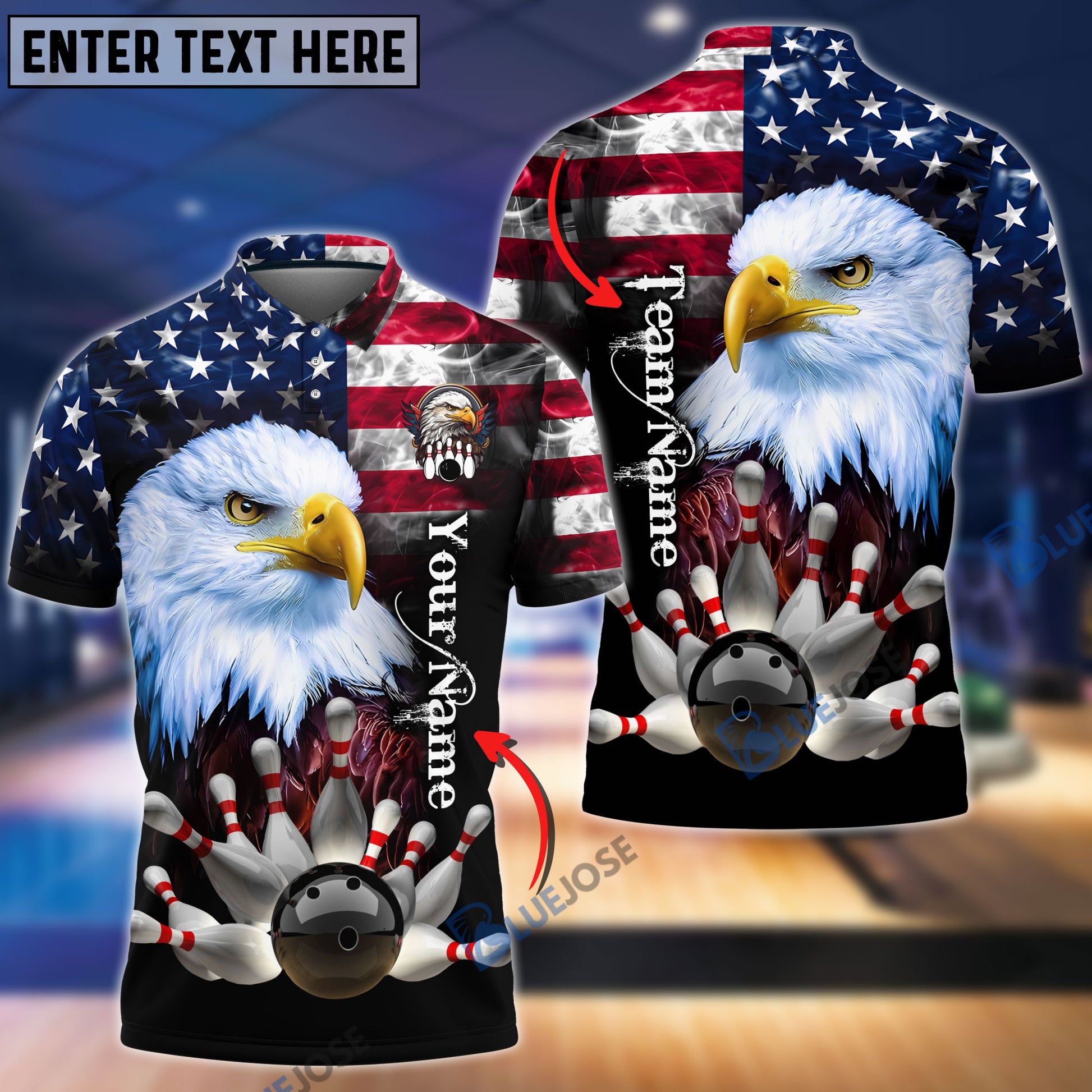BlueJose Bowling American Eagle Customized Name, Team Name 3D Shirt