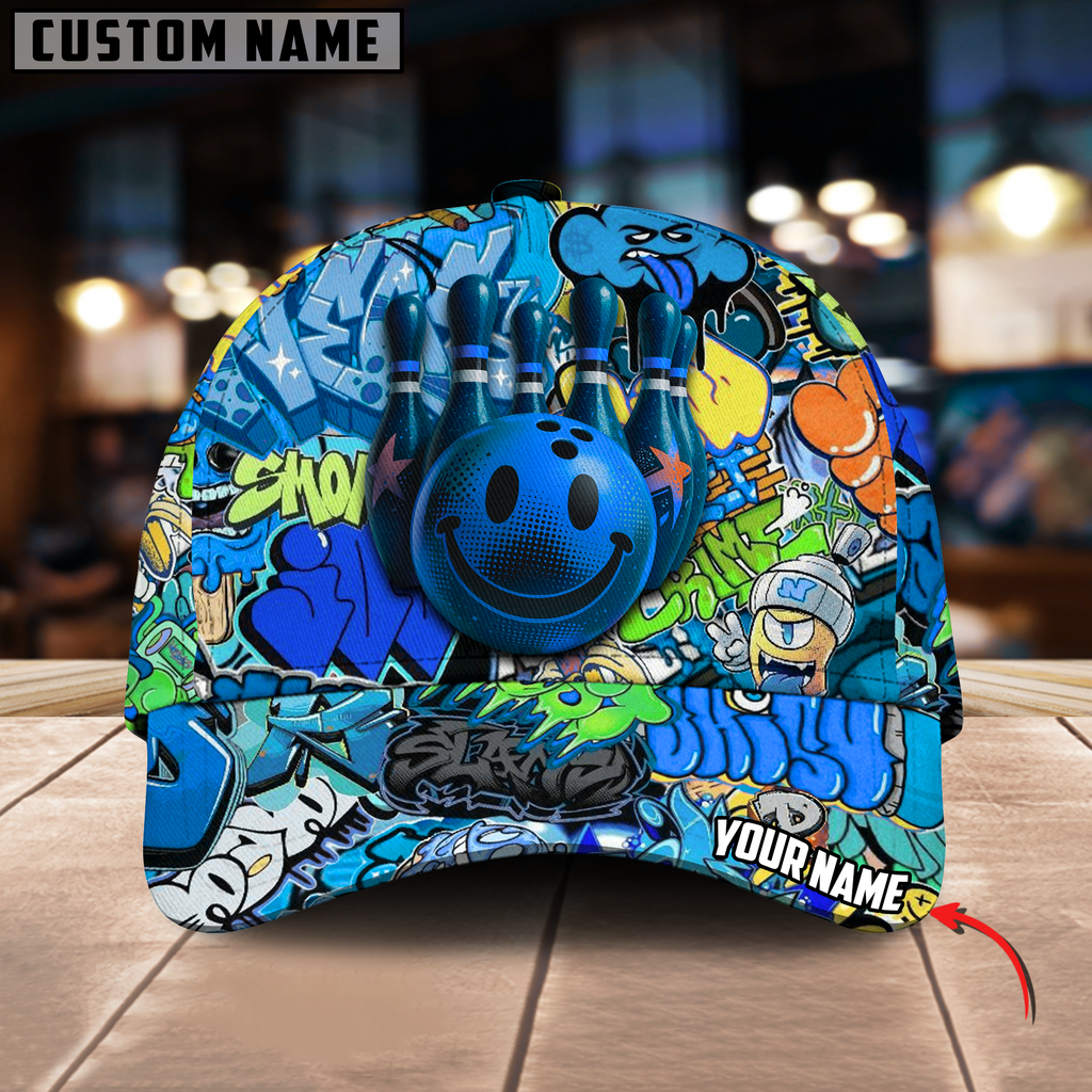 BlueJoses Bowling And Pins Graffiti Funny Smiley Personalized Name Cap