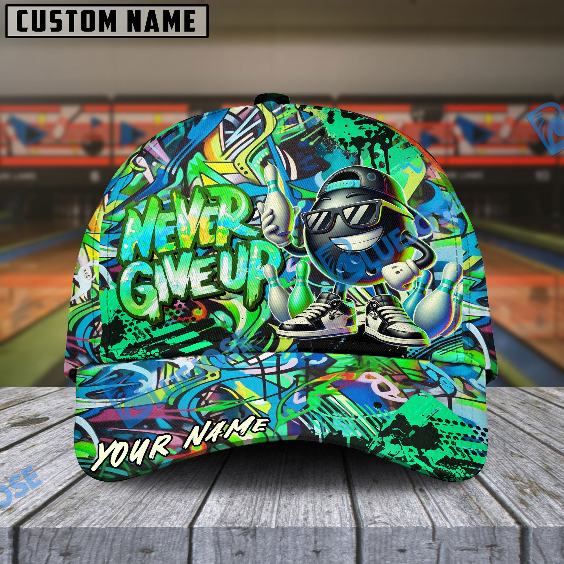 BlueJoses Bowling And Pins Never Give Up Graffiti Pattern Personalized Name Cap