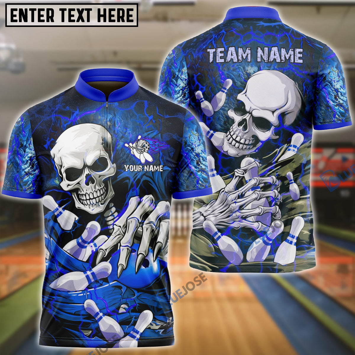 BlueJose Bowling And Pins Skull Lightning Multicolor Customized Name 3D Shirt (4 Colors)