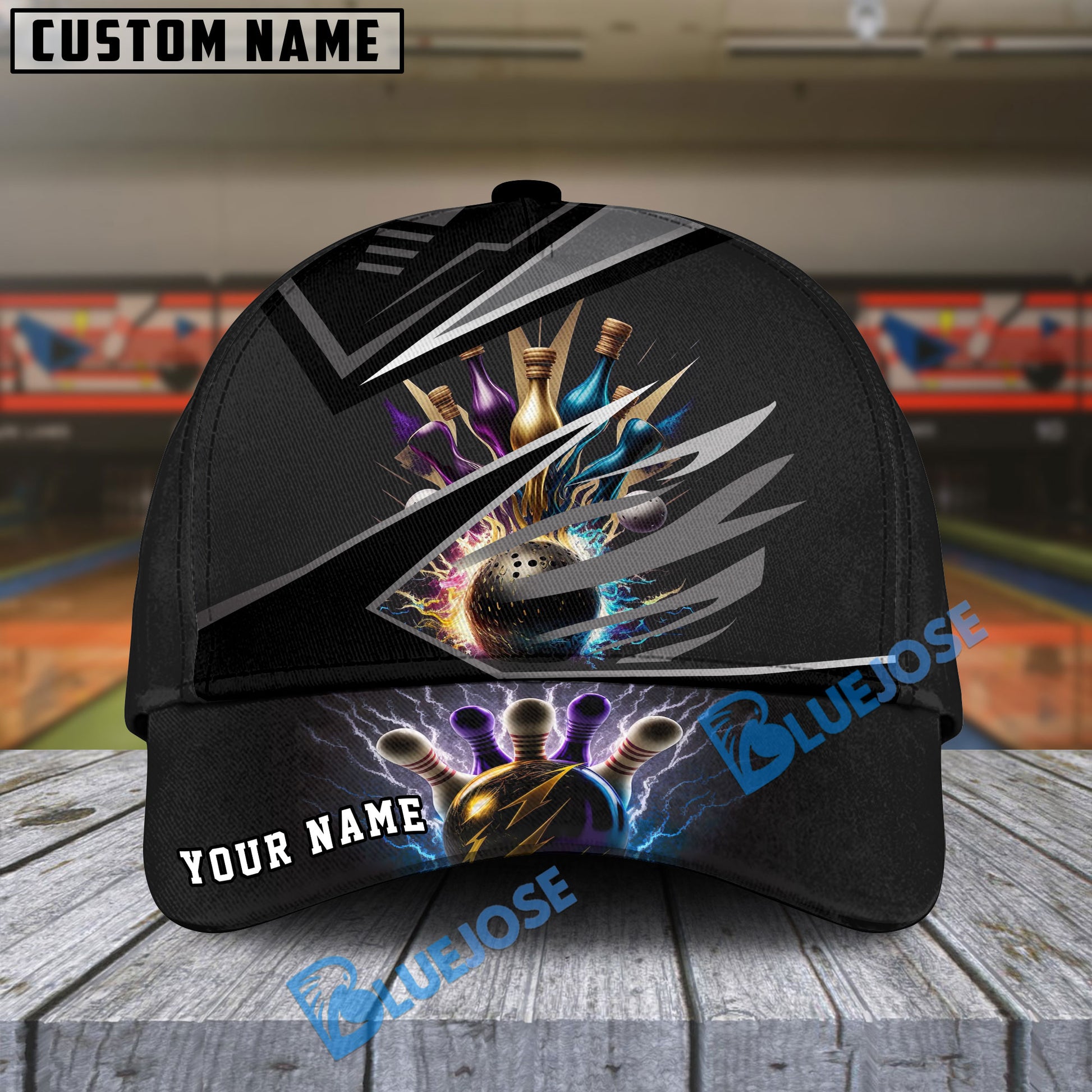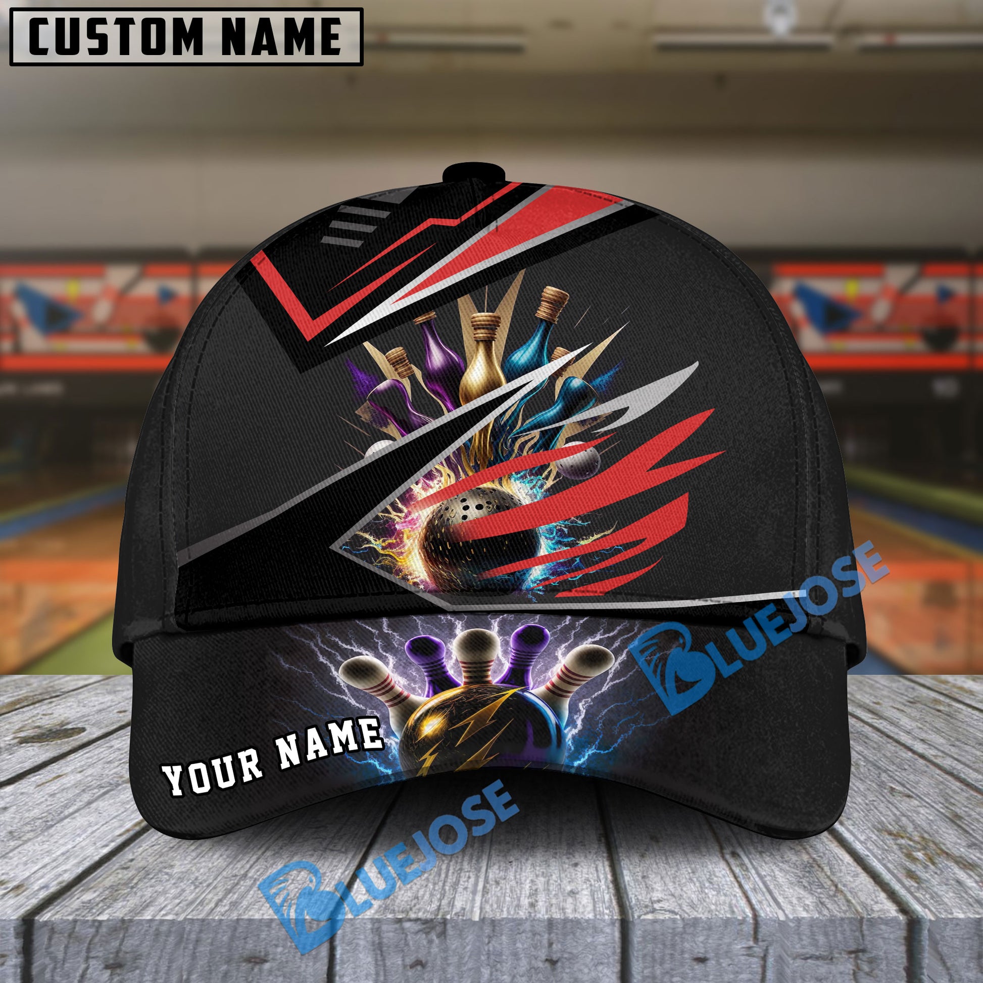 BlueJoses Bowling And Pins Premium Multicolor Personalized Name Cap