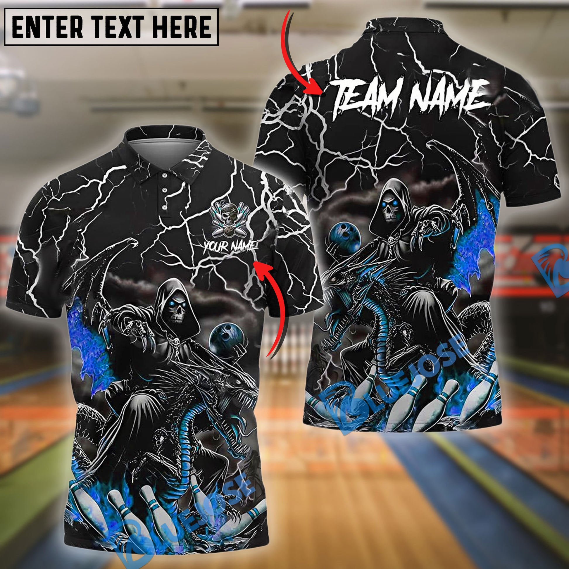 BlueJose Bowling And Pins Racer Skull Customized Name, Team Name 3D Shirt (4 Colors)