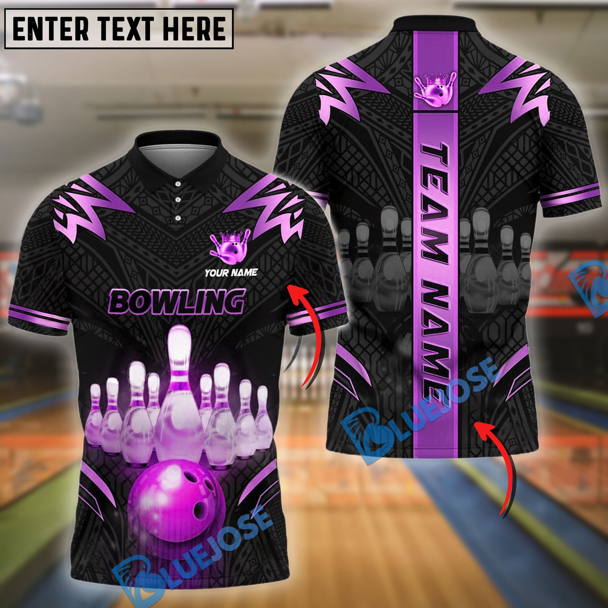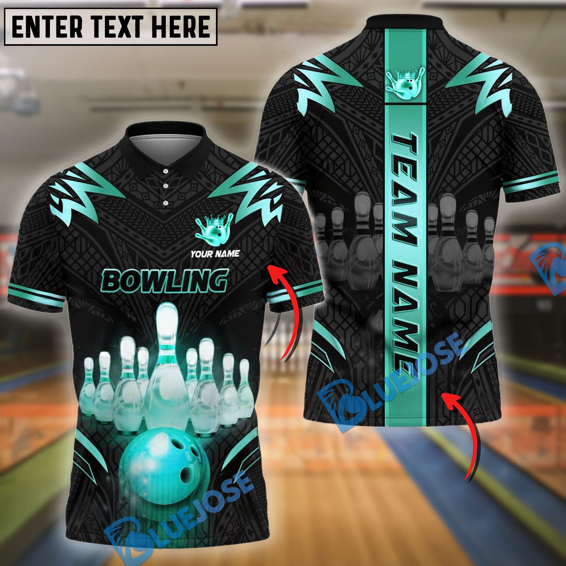 BlueJose Bowling And Pins Strike Premium Customized Name, Team Name 3D Shirt (4 Colors)