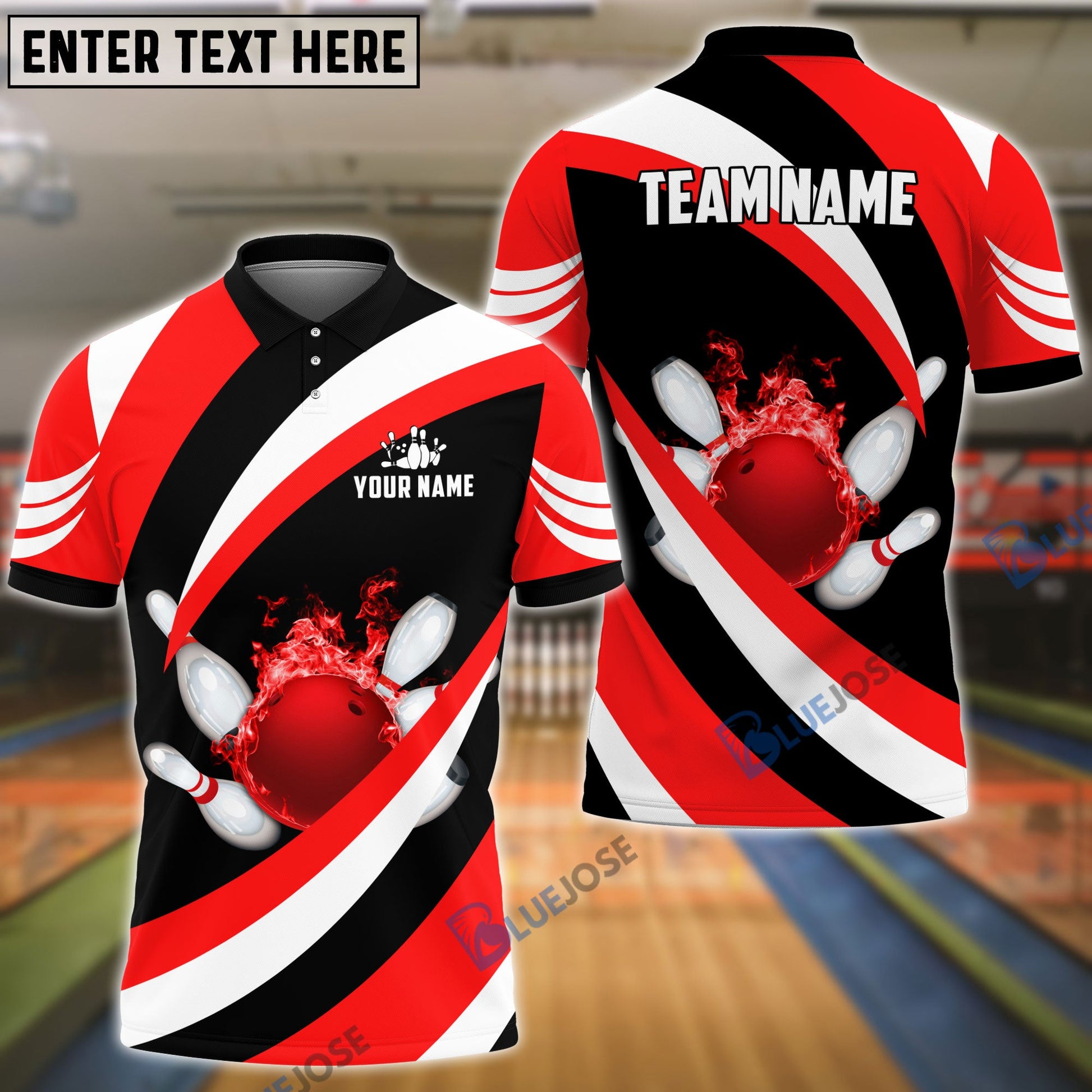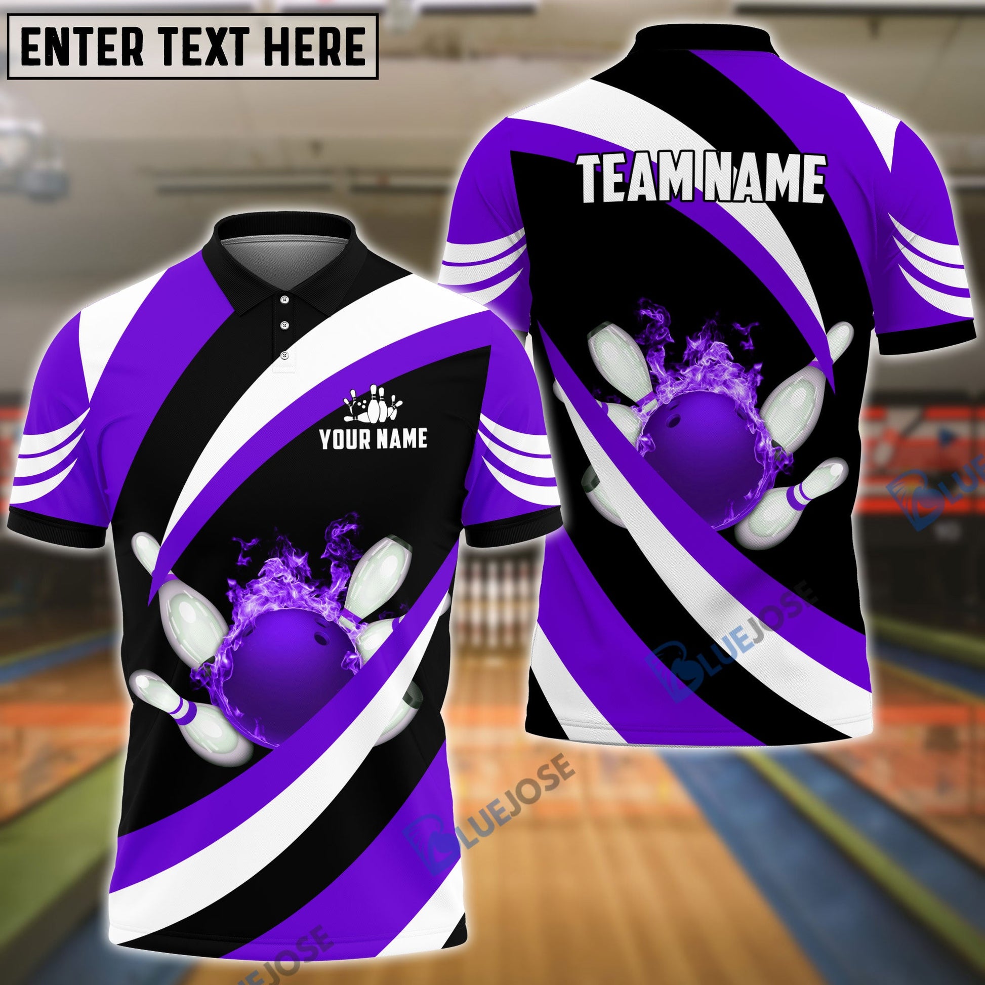 BlueJose Bowling and Pins Wave Pattern Customized Name 3D Shirt (4 Colors)