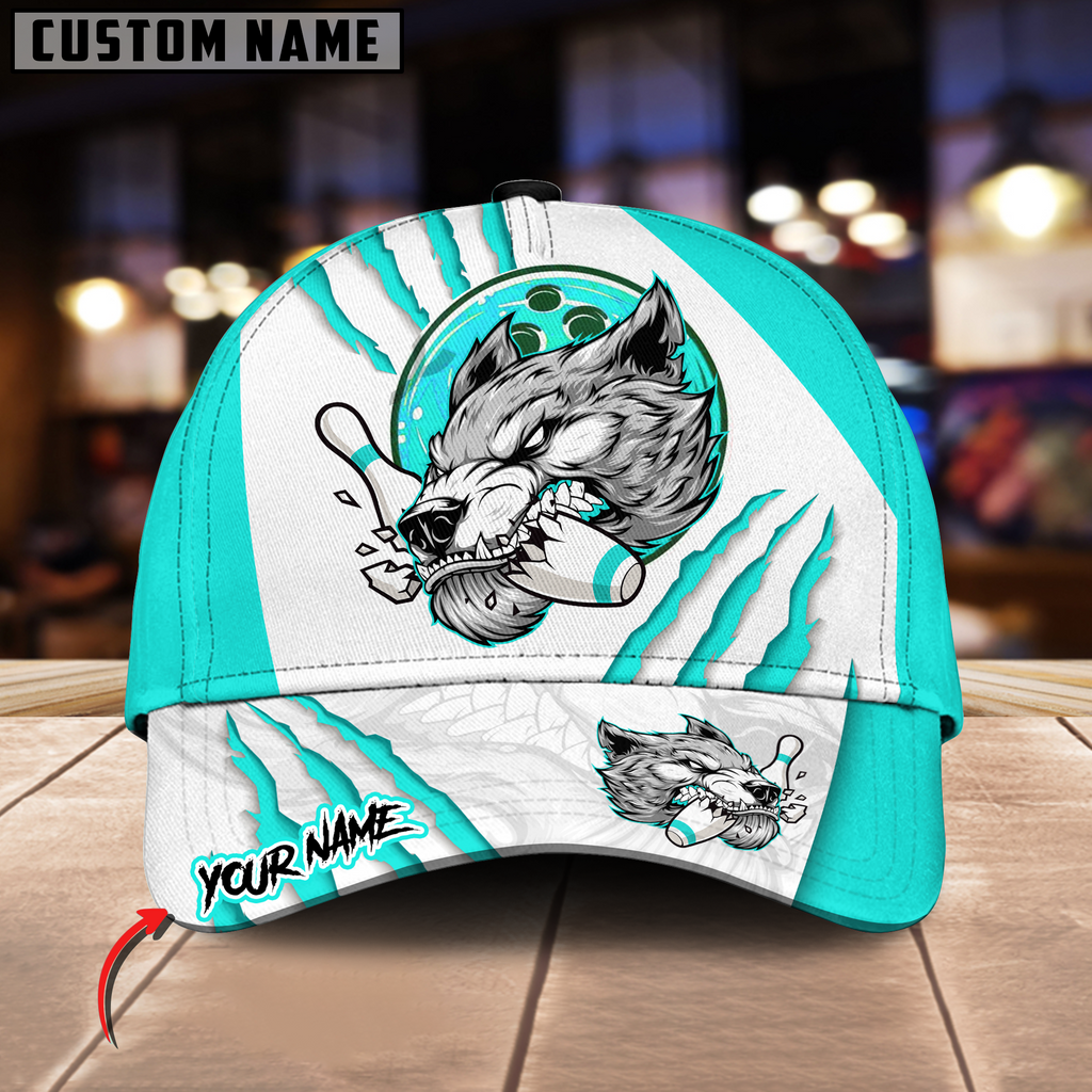 BlueJoses Bowling And Pins Wolf Strike Power Personalized Name Cap