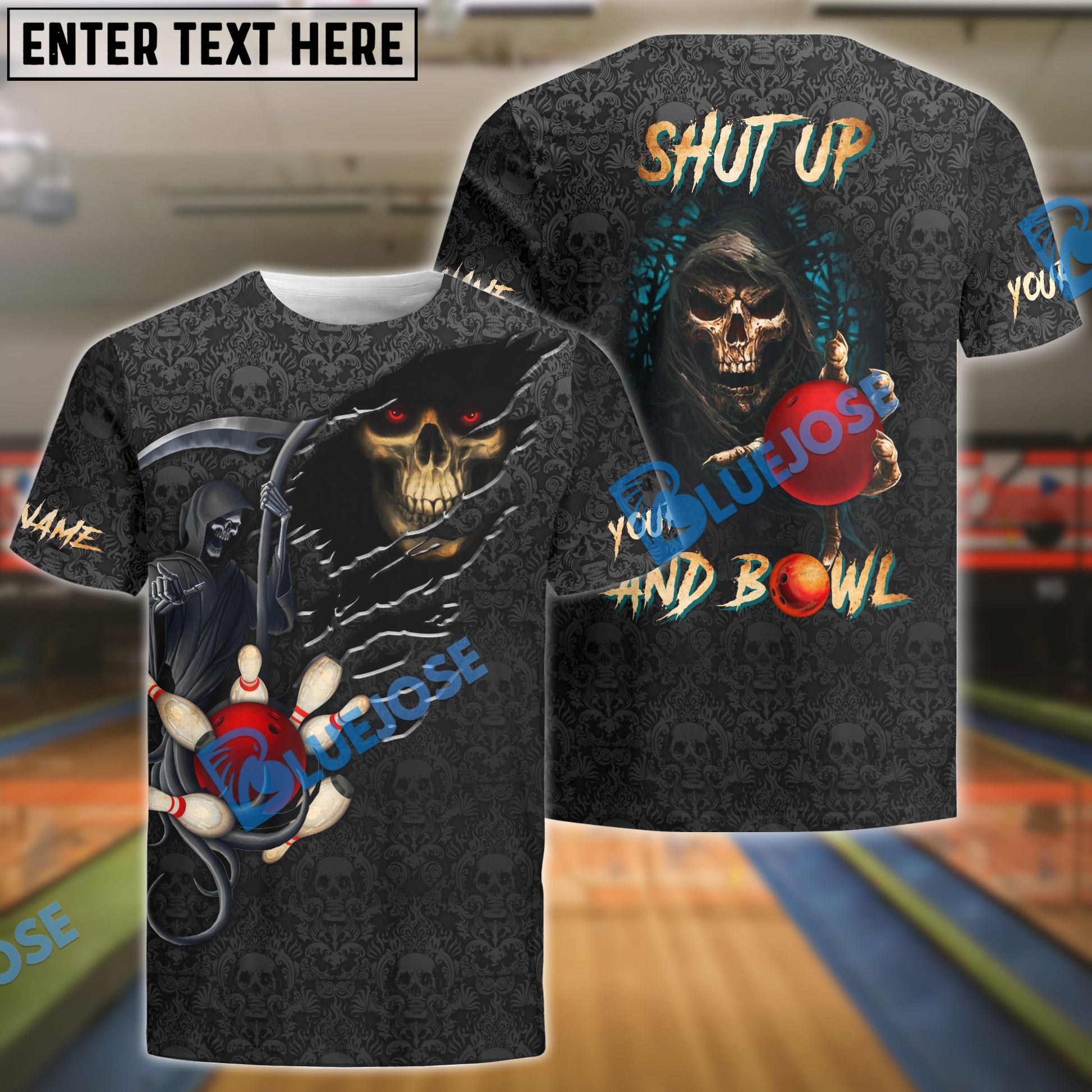 BlueJose Bowling Reaper Customized Name, Team Name 3D Shirt