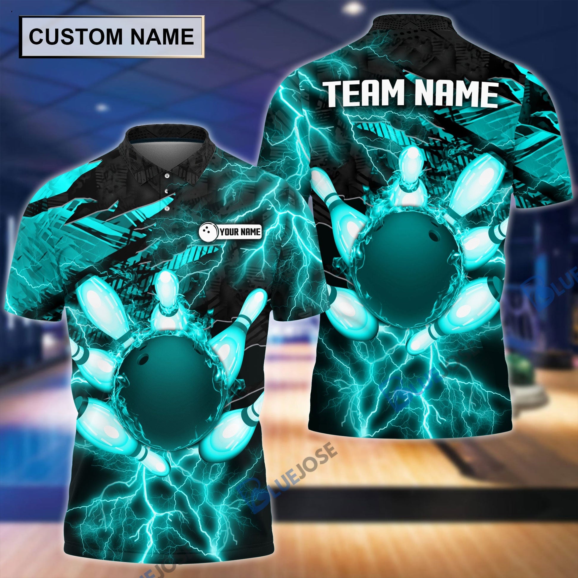BlueJose Thunder Power Bowling And Pins Personalized Name Team Name 3D Shirt (4 Colors), Personalized Shirts For Bowling Players