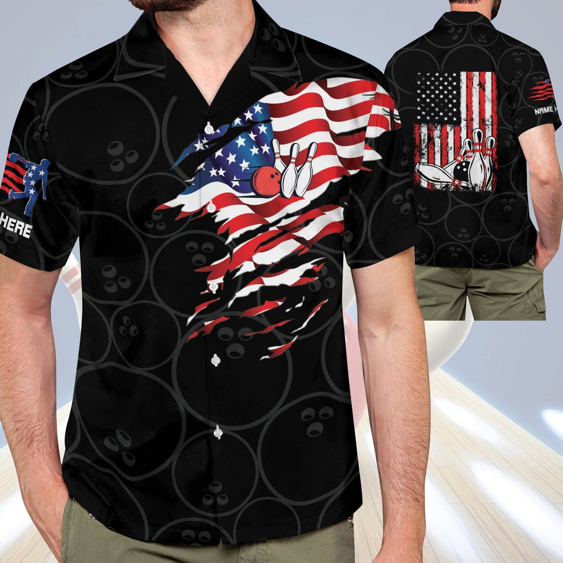 BlueJoses USA Flag Patriotic Button-Down Personalized Name Hawaiian Shirt