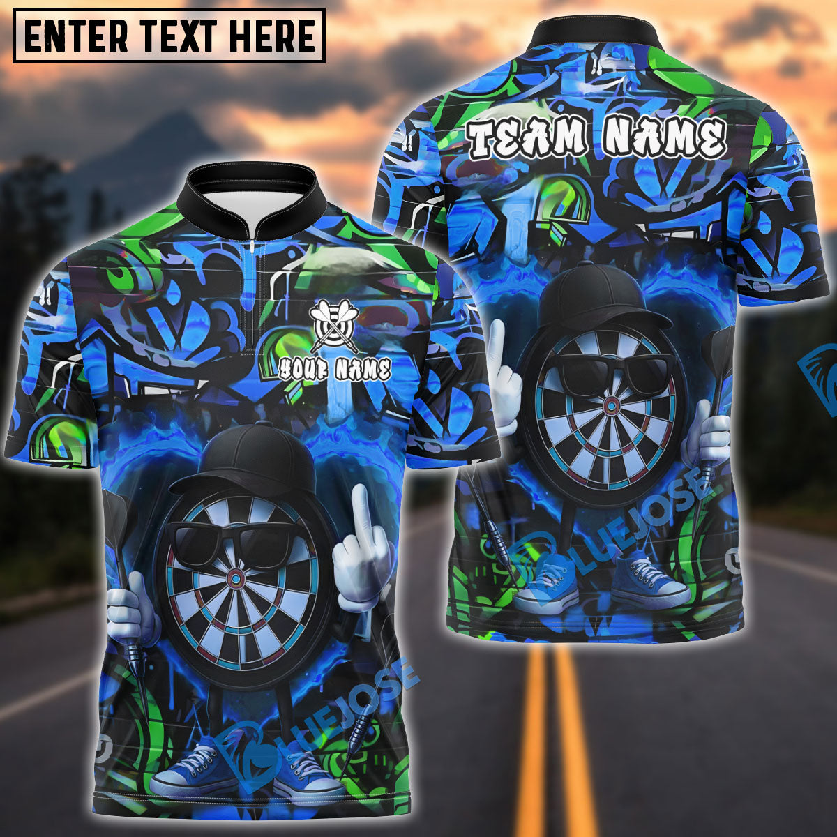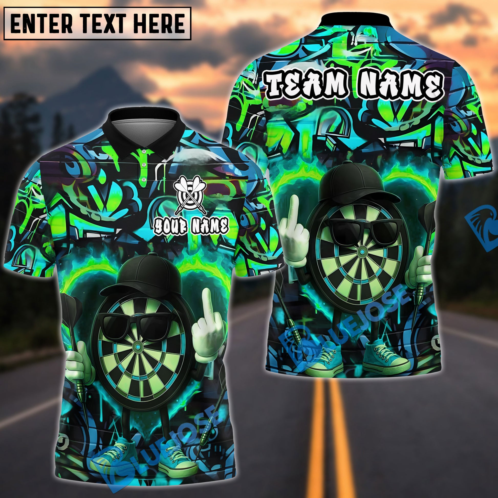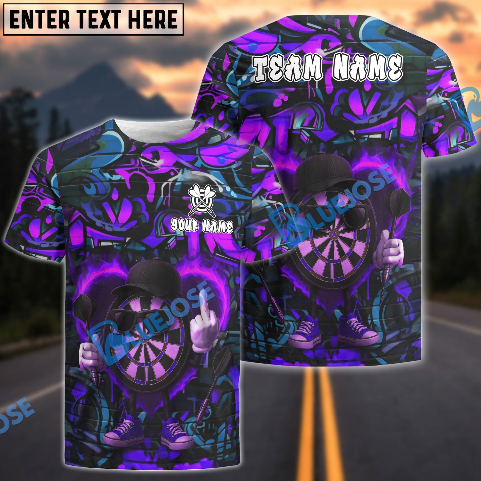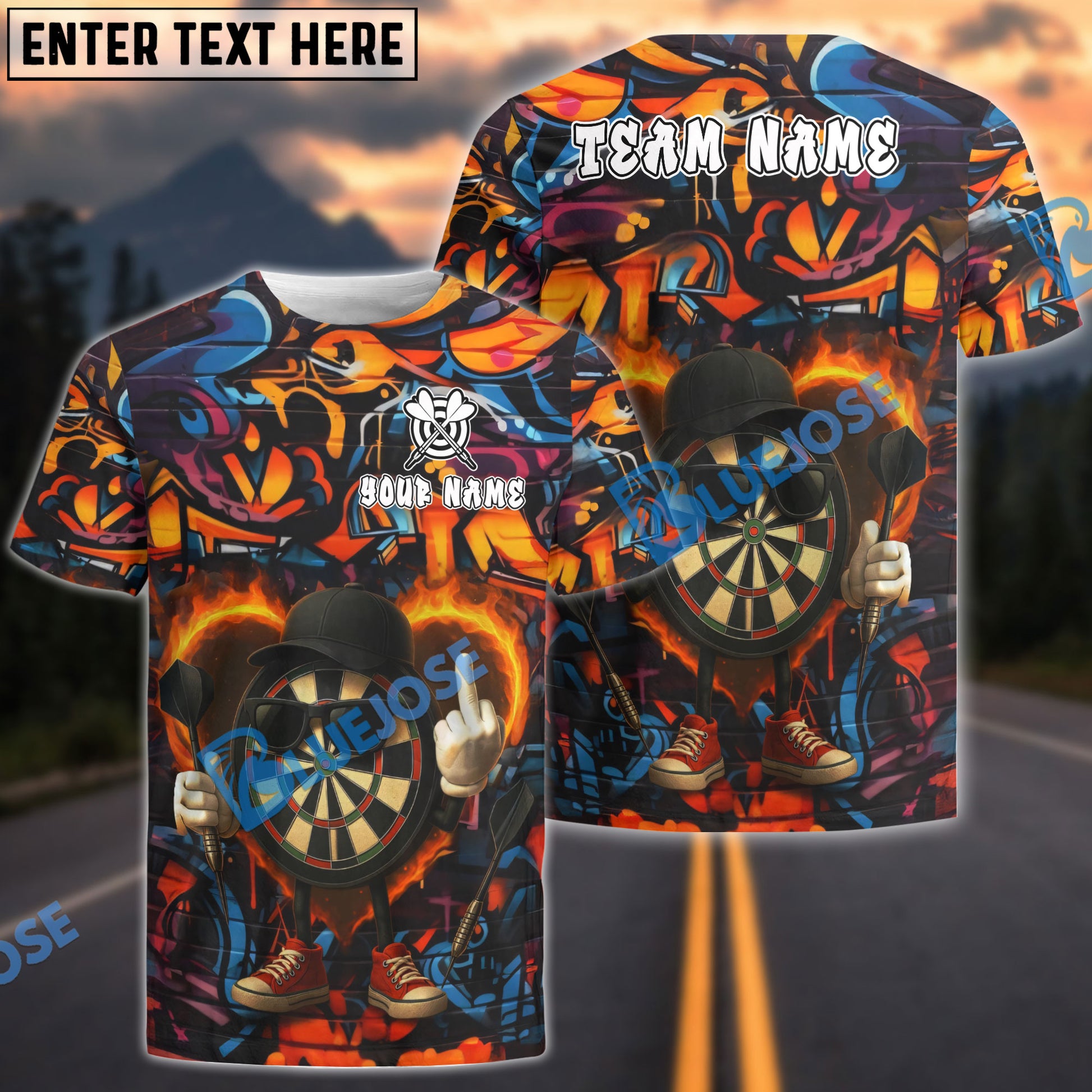 BlueJose Darts Flaming Dartboard Attitude Graffiti Pattern Personalized Shirt (4 Colors)