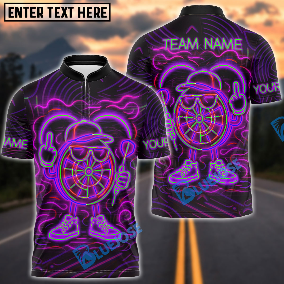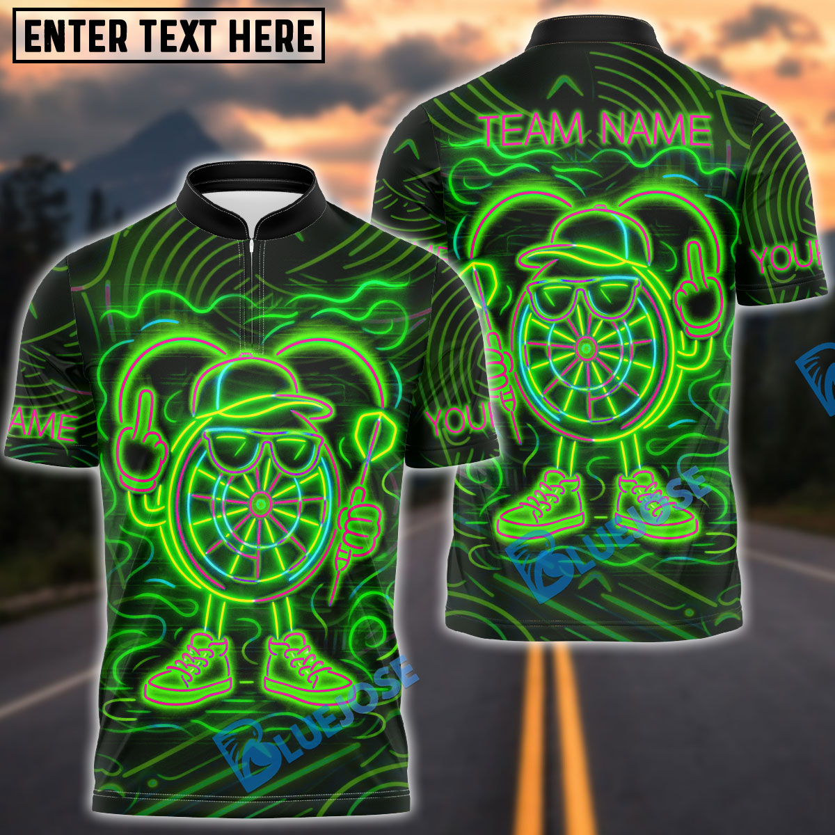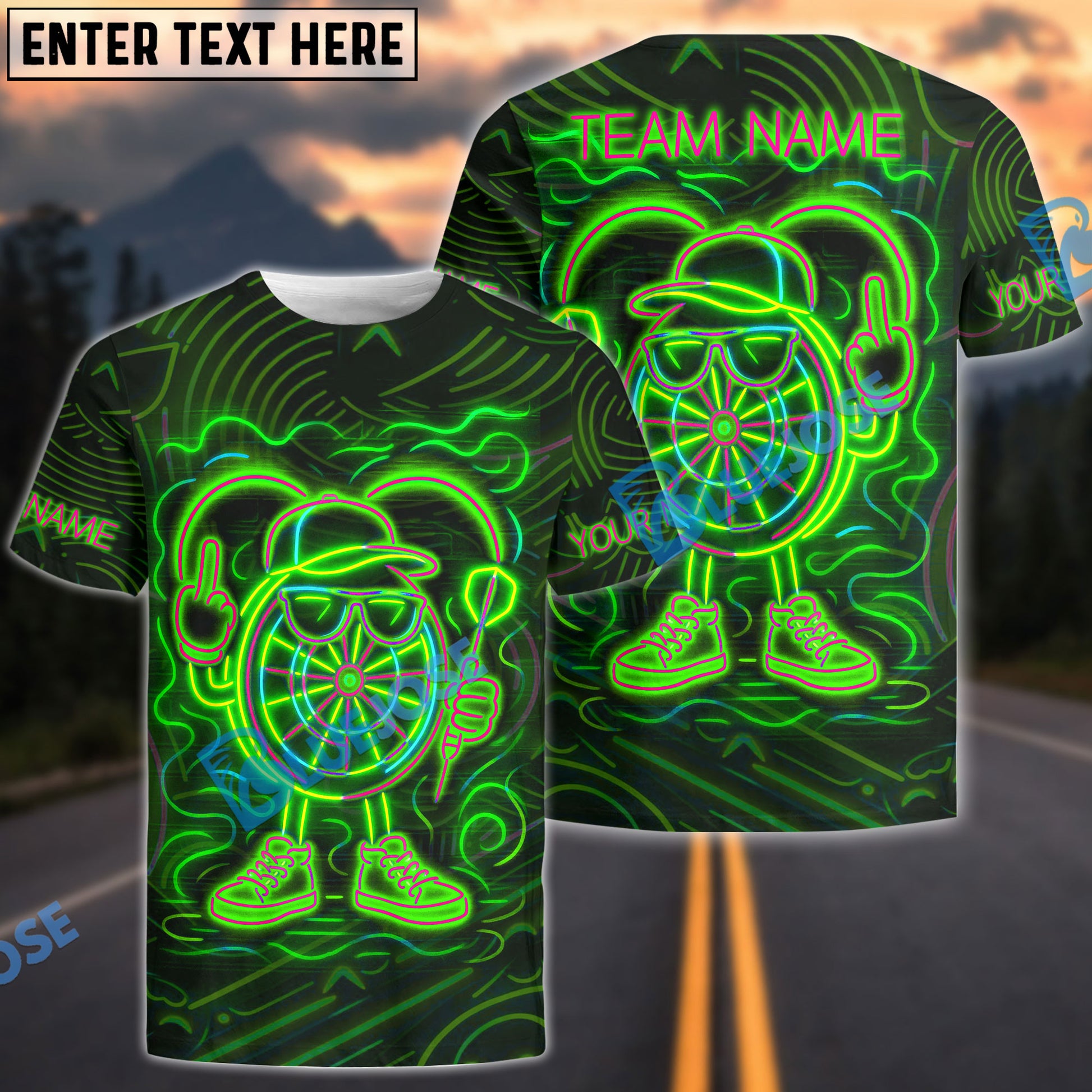 BlueJose Darts Neon Dartboard Champion Personalized Name, Team Name Shirt (4 Colors)