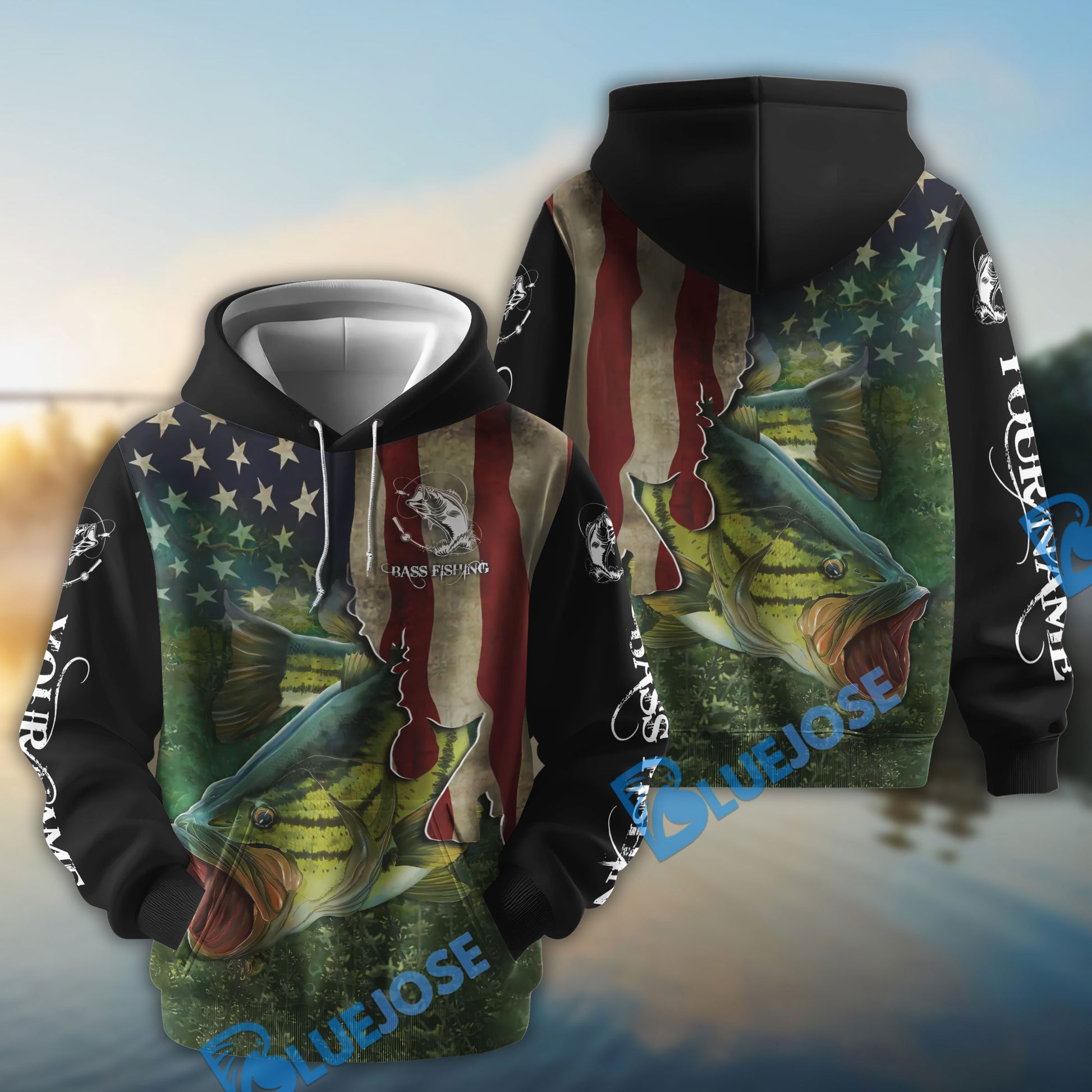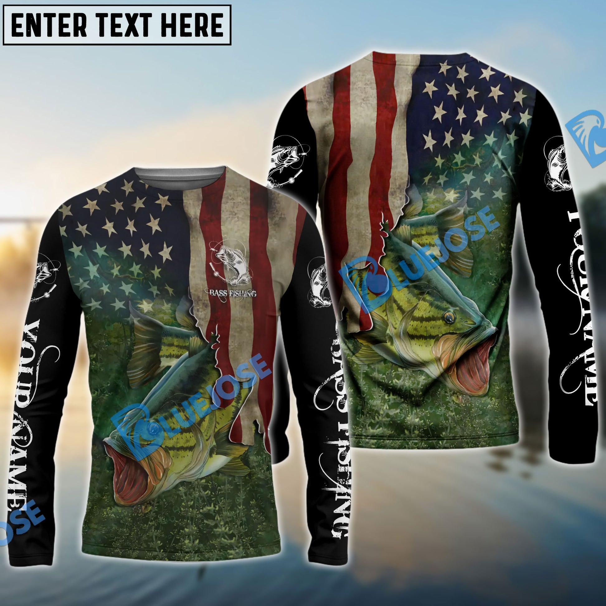 Bluejose Largemouth Bass Fishing 3D American Flag Patriotic Customize Name Fishing Shirts