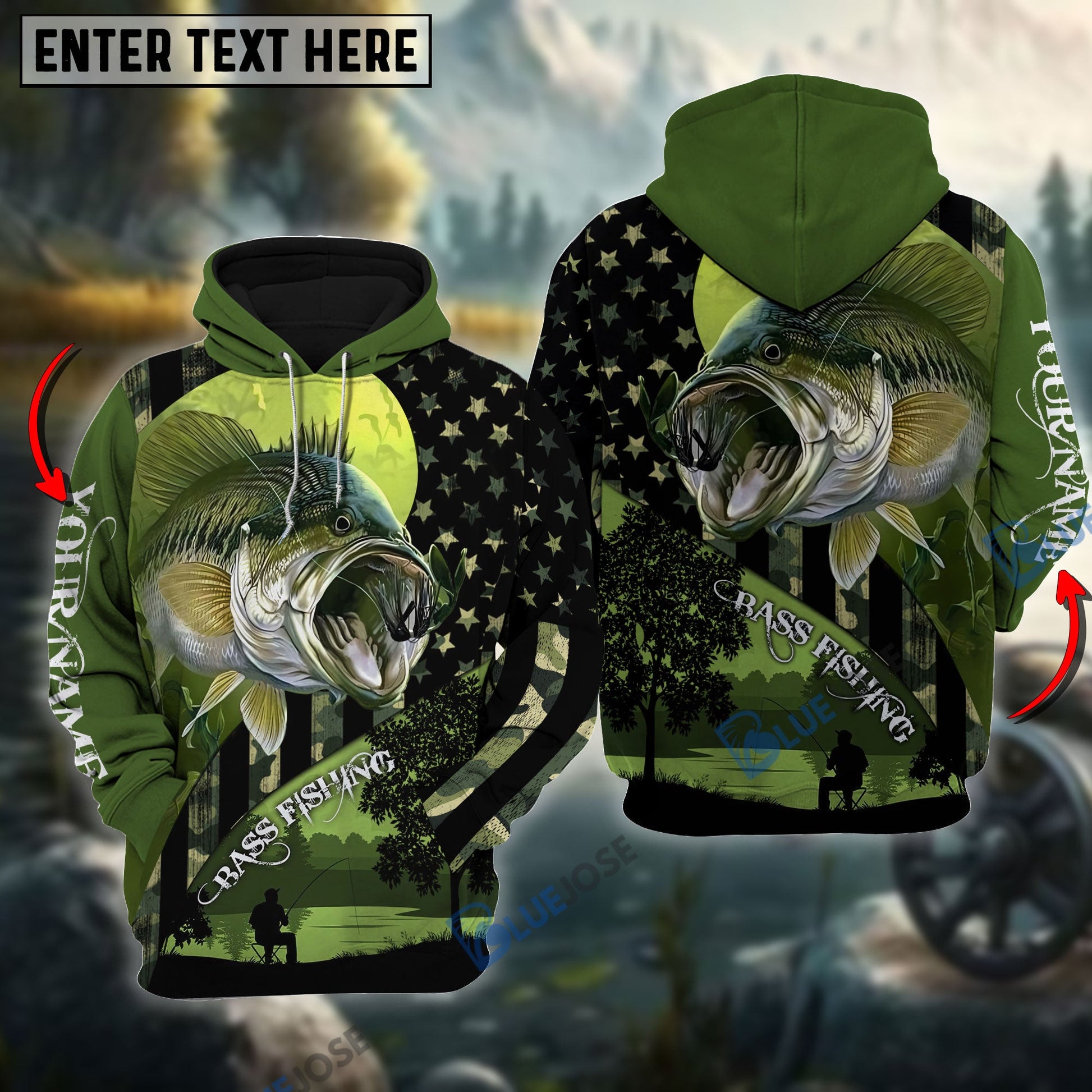 Bluejose Largemouth Bass Fishing American Flag Customize Name 3D Shirts