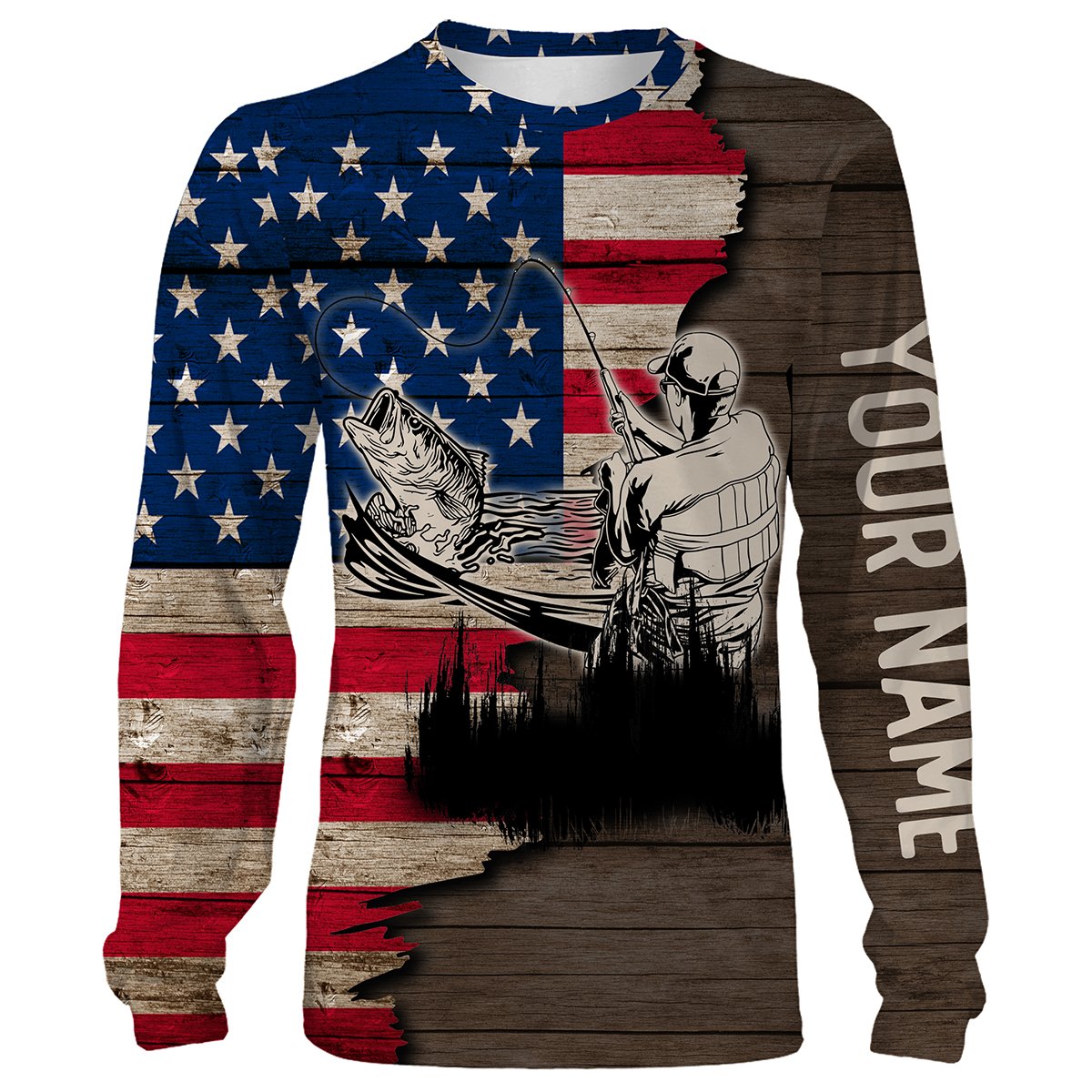 Bluejose Largemouth Bass Fishing American Flag Customize Name All Over Printed Shirts Personalized Fishing Gift