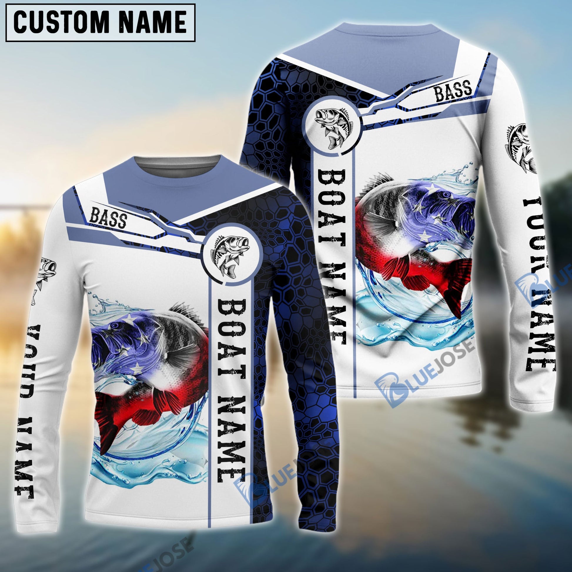 Bluejose Bass Fishing Blue Camo American Flag Custom Name & Boat Name 3D Shirts
