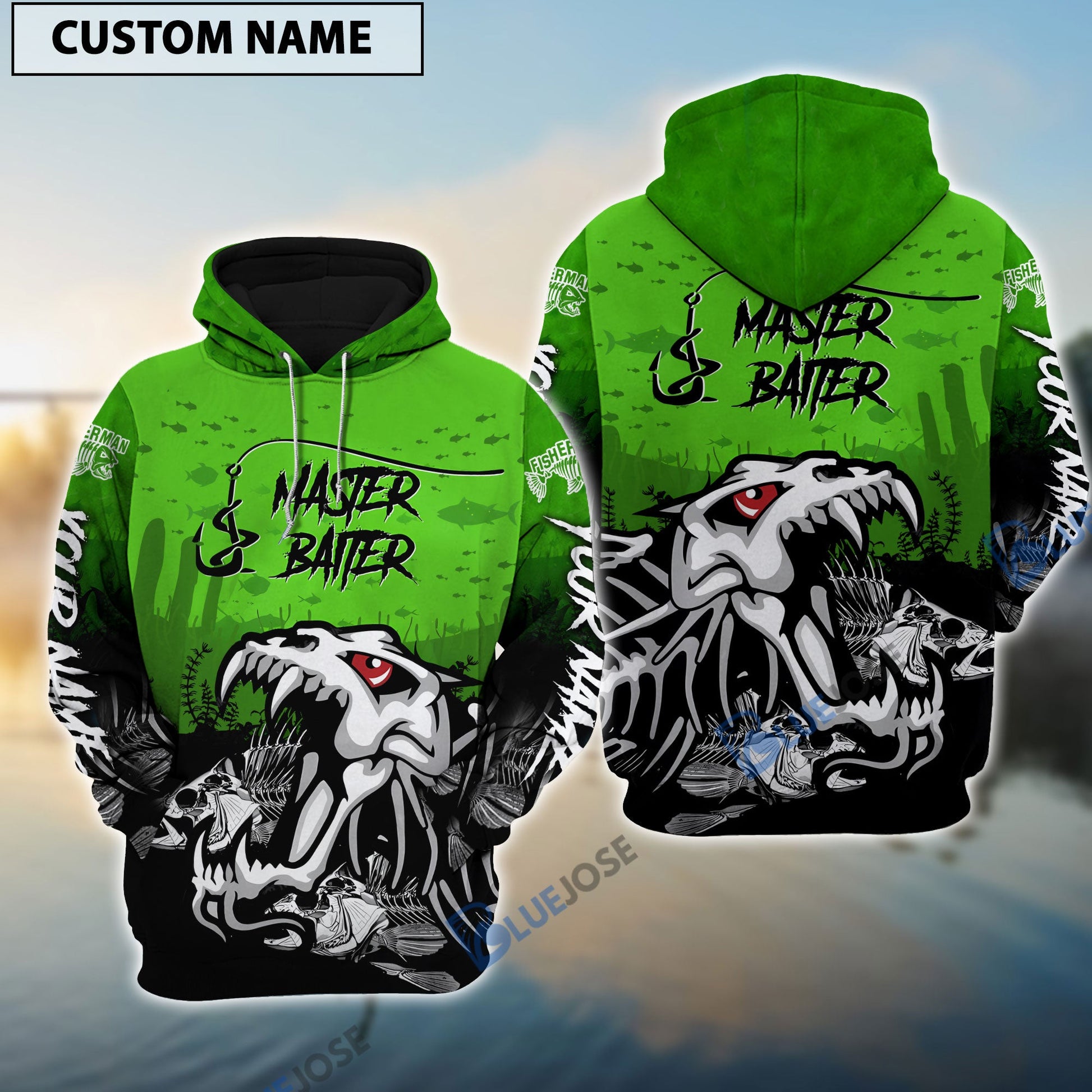 BlueJose Master Baiter Green Custom Name Fishing Shirt