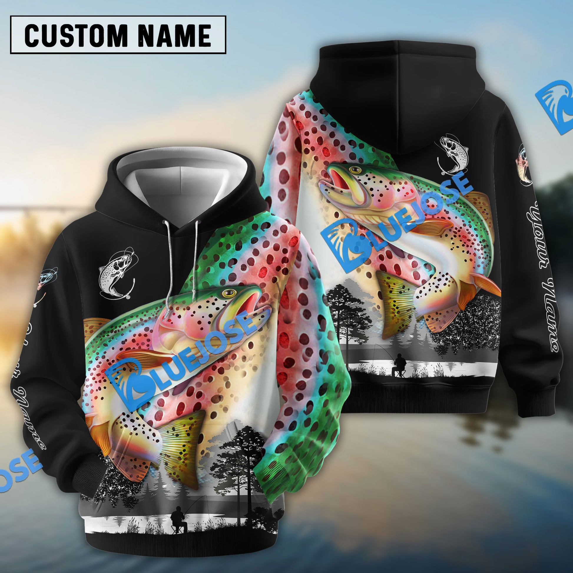 BlueJose Rainbow Trout Fishing Scales Custom Name Fishing Shirt