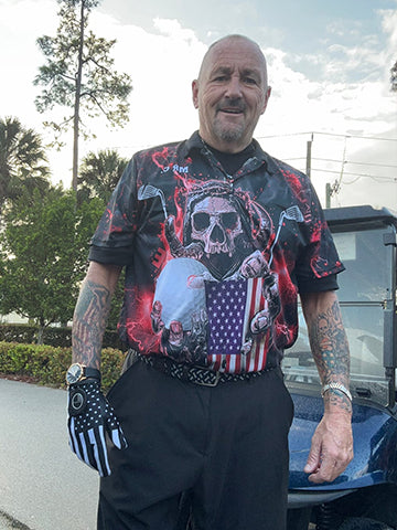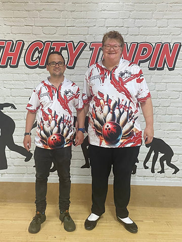 BlueJose Bowling And Pins Grim Skull with American Flag Personalized Name, Team Name Shirt