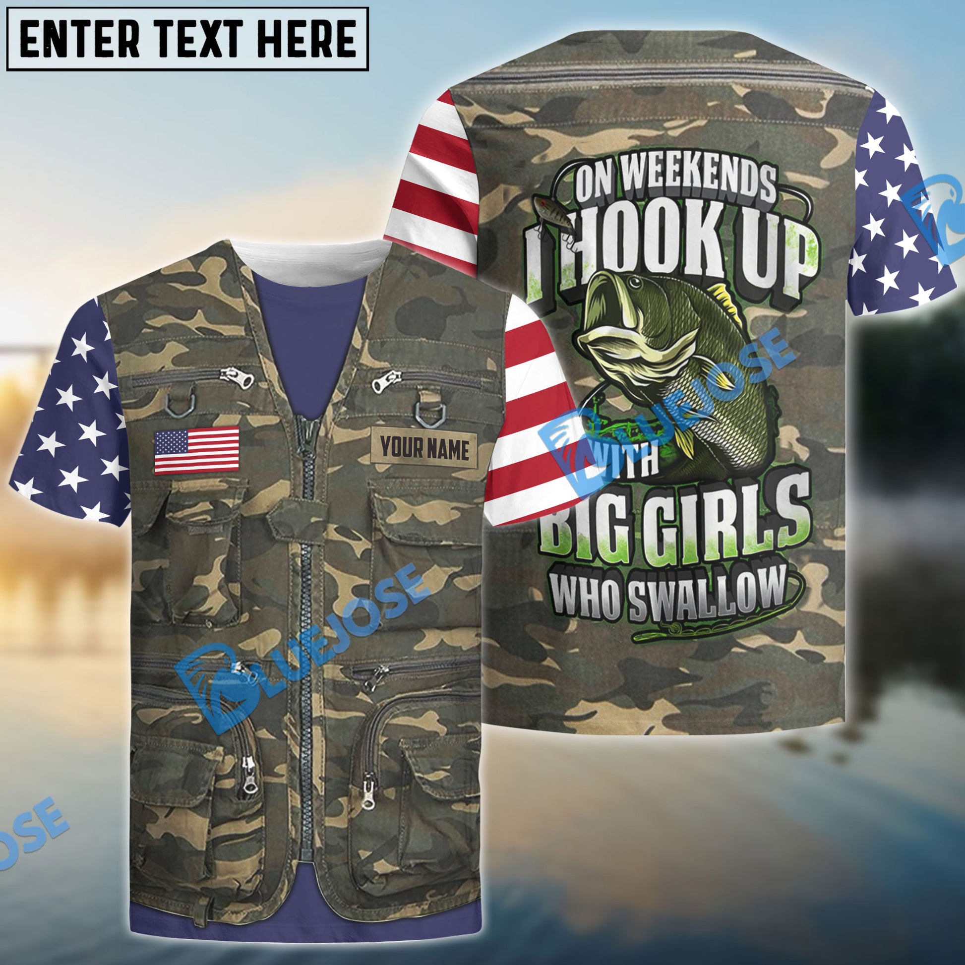 BlueJose American Fishing Vest Personalized Name 3D Shirt