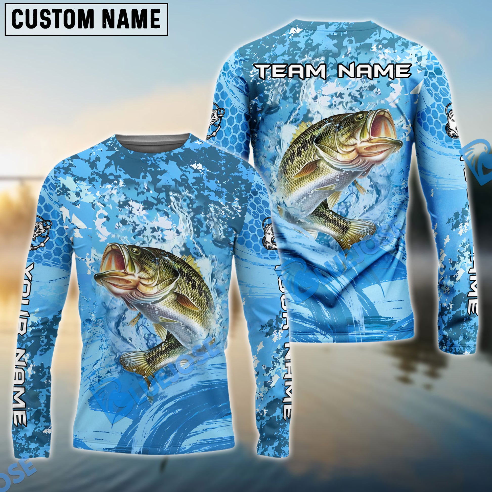 Bluejose Bass Fishing Catch The Blue Wave Custom Name & Team Name 3D Shirts