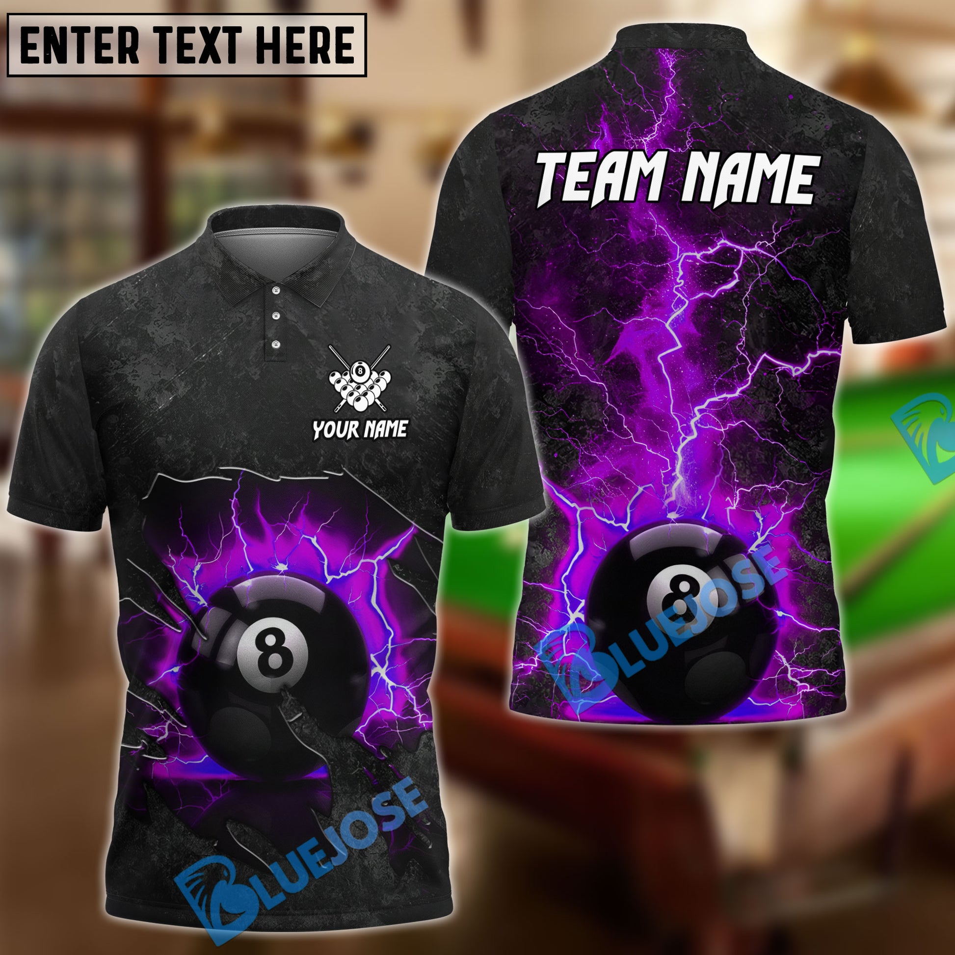 BlueJose Billiards Ball 8 Pool Thunder Lightning Personalized Name, Team Name Unisex Shirt (4 Colors)