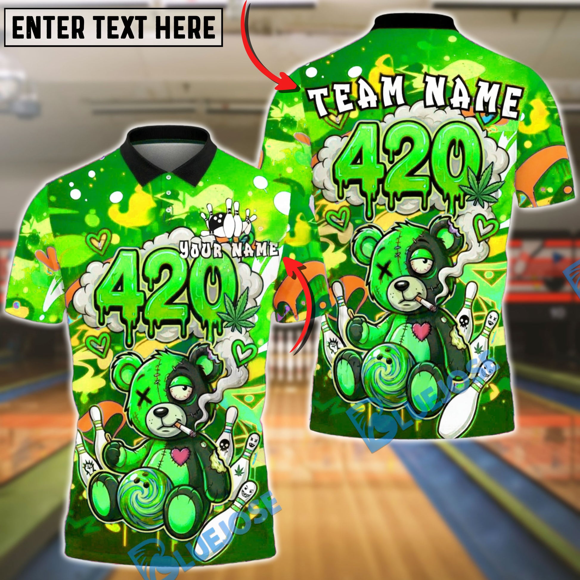 BlueJose Bowling 420 Bear Smoke Art Customized Name, Team Name 3D Shirt (4 Colors)
