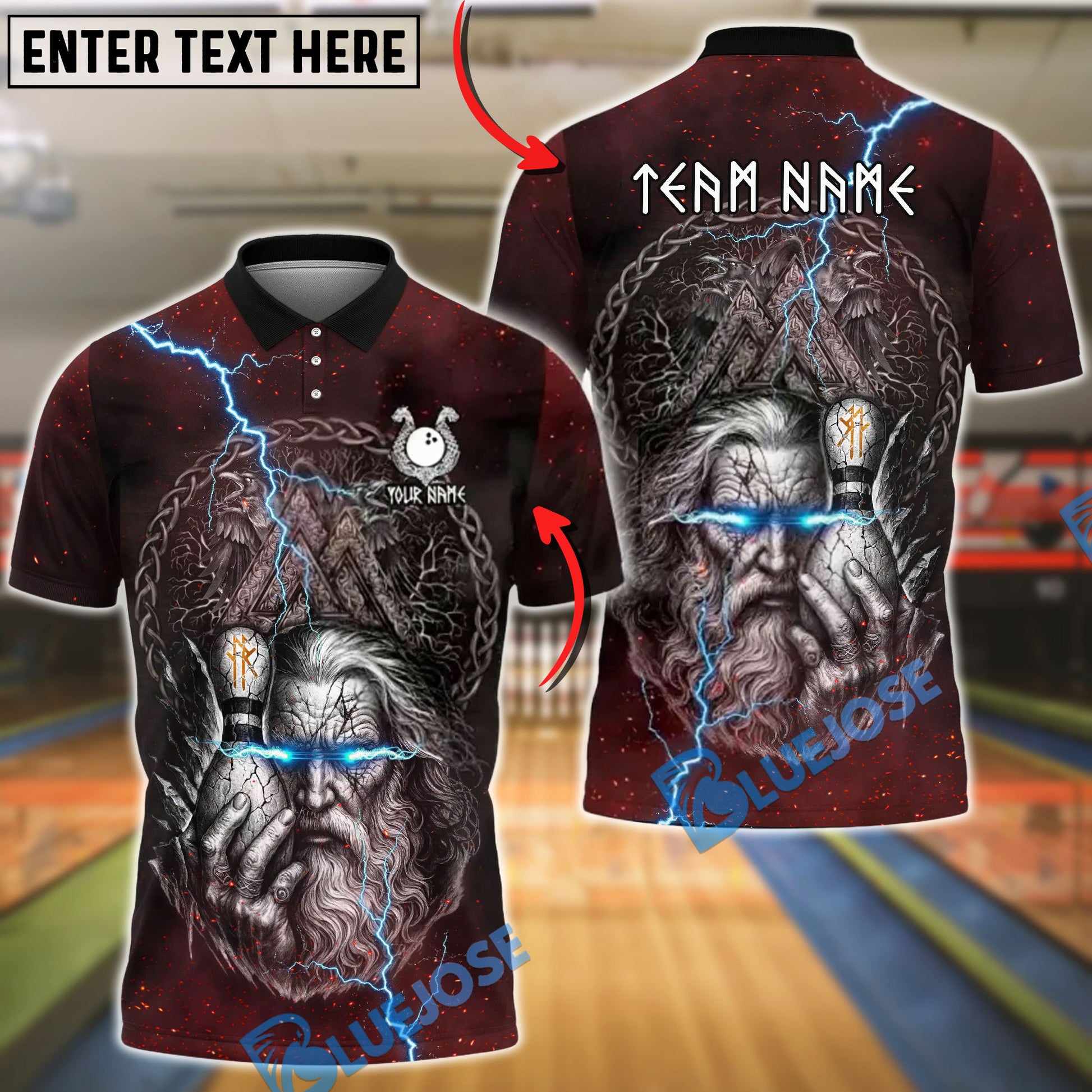 BlueJose Bowling Odin Rune Lightning Graphic Customized Name, Team Name 3D Shirt (4 Colors)