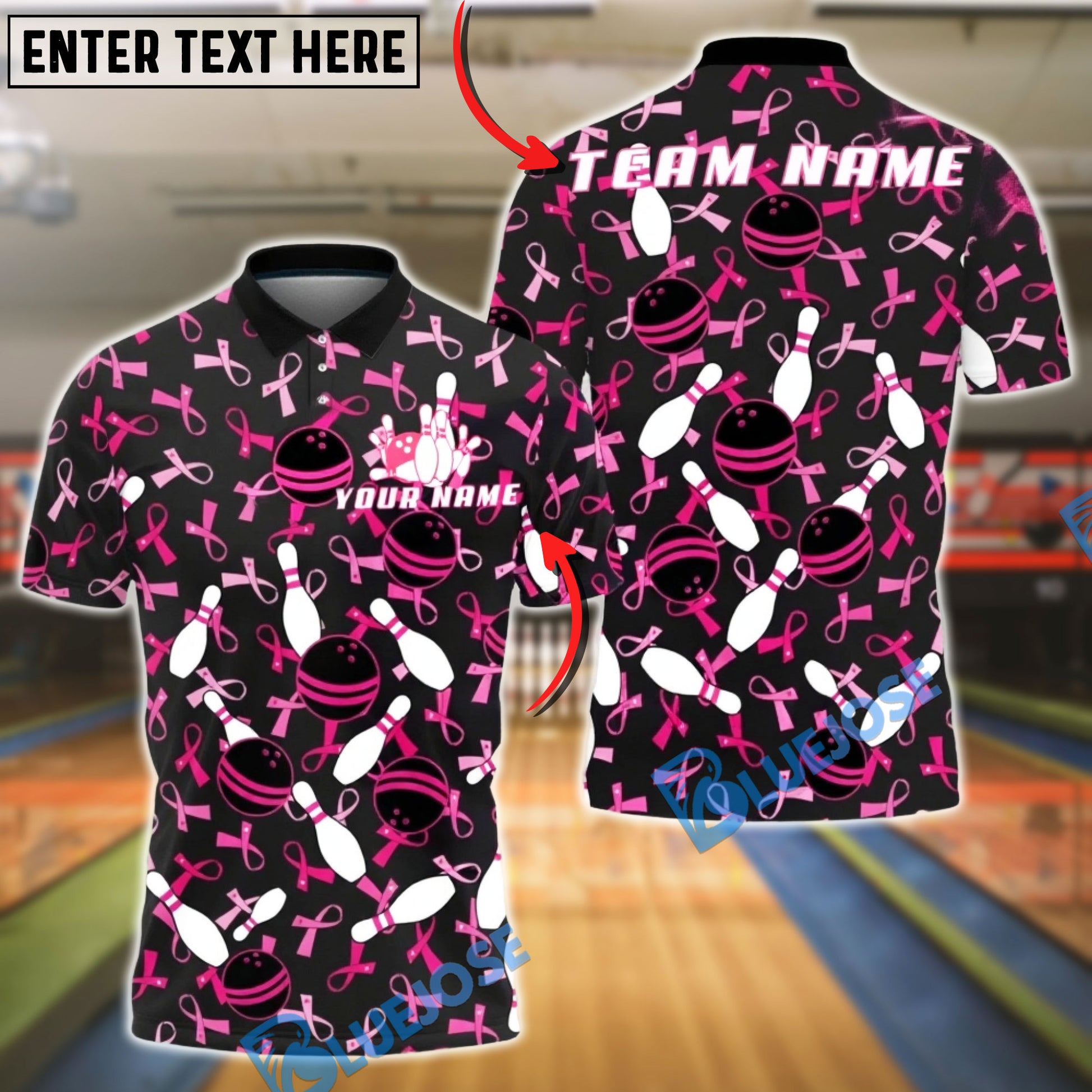 BlueJose Bowling Pink Ribbon Breast Cancer Awareness Pattern Personalized Name, Team Name 3D Shirt