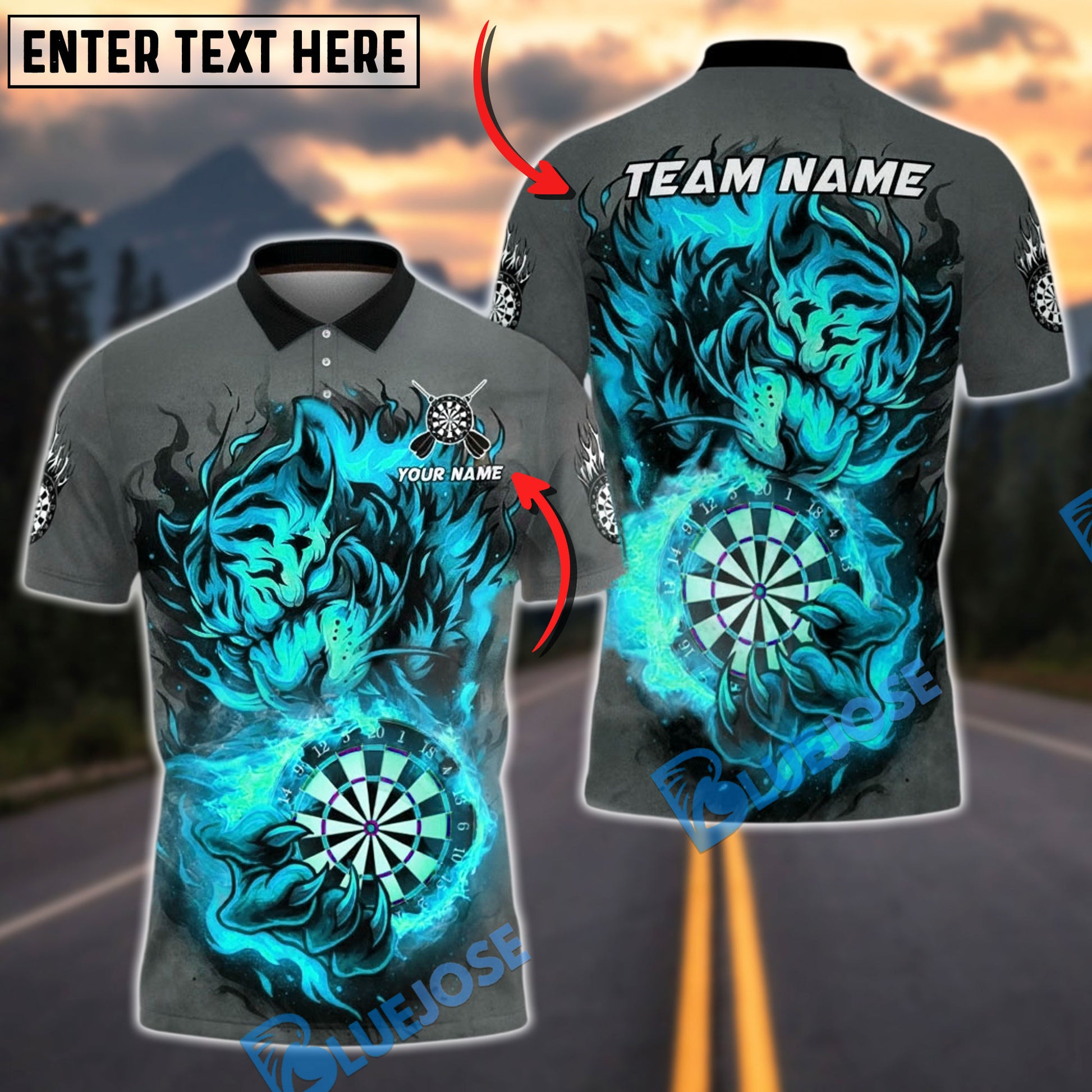 BlueJose Darts Fiery Tiger Dartboard Multicolor Options Personalized Name Shirt (4 Colors)