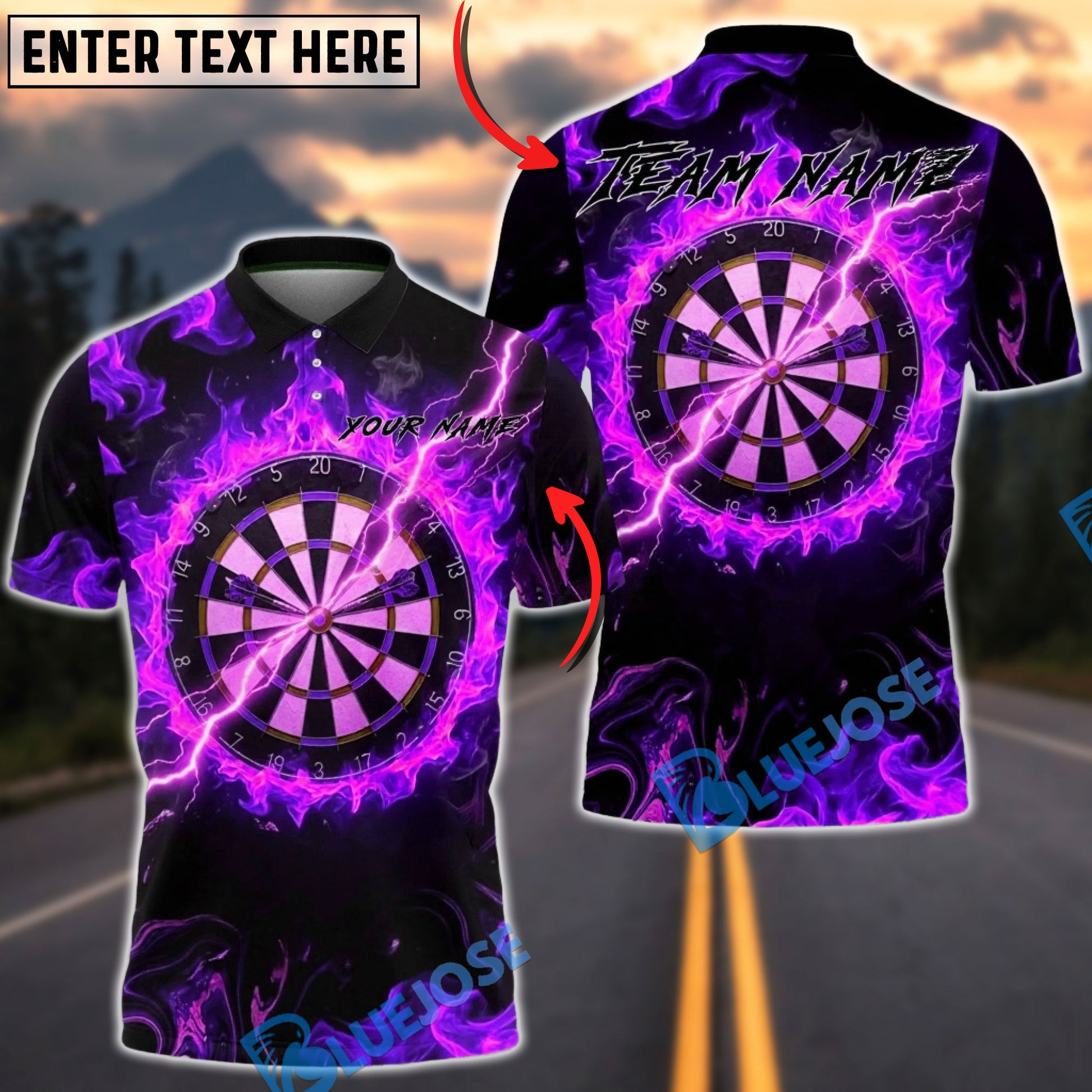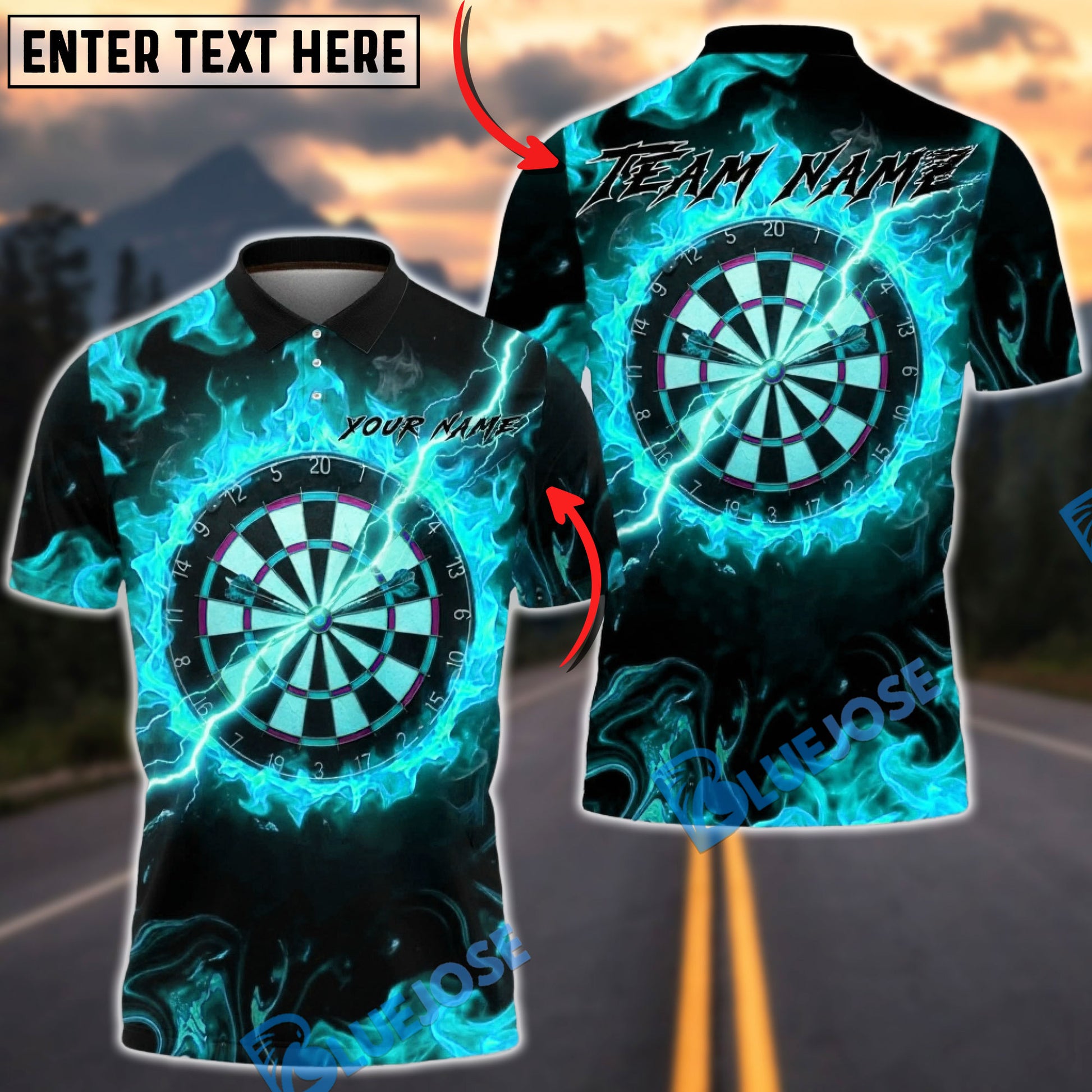 BlueJose Darts Fire Flames Lightning Multicolor Options Personalized Name Shirt (4 Colors)