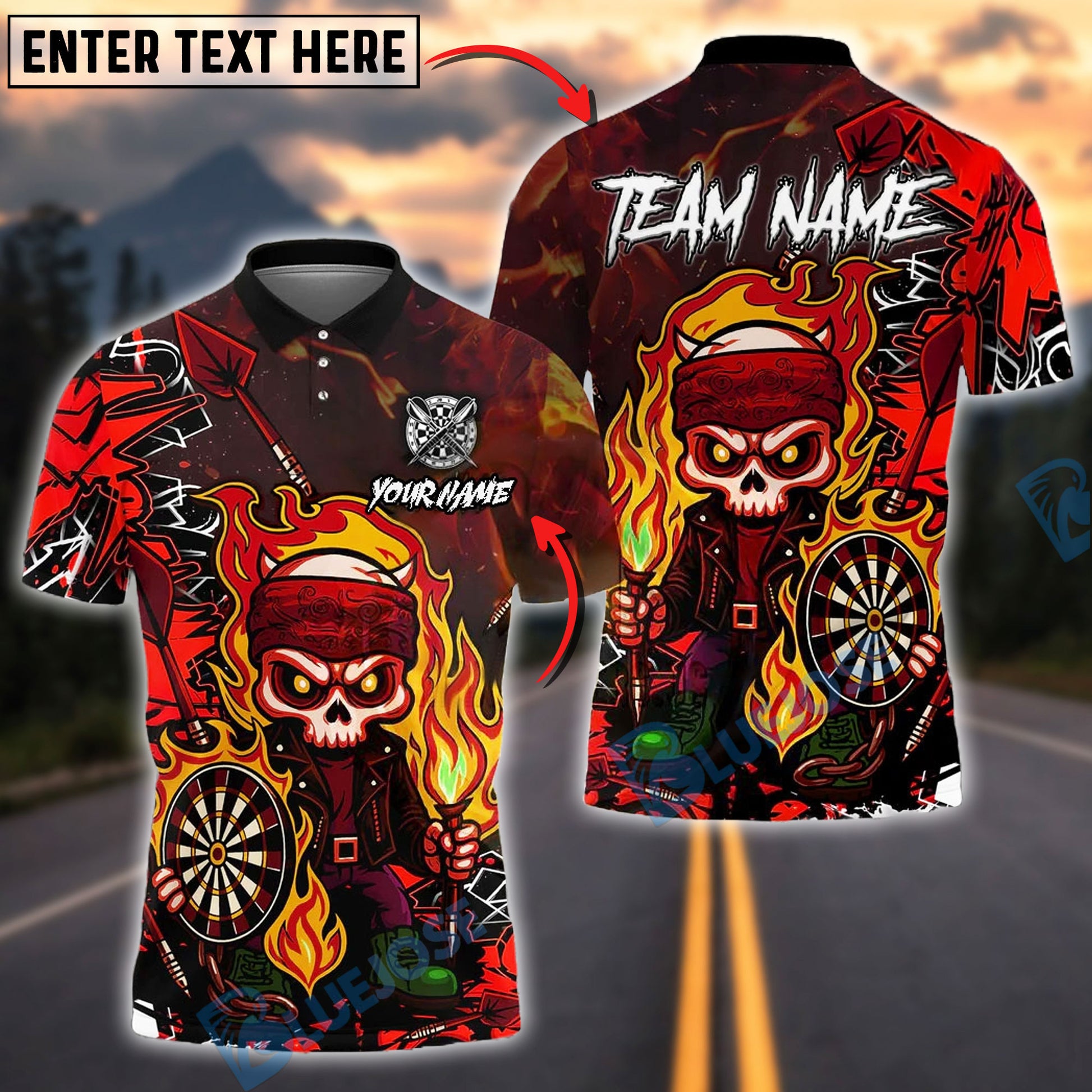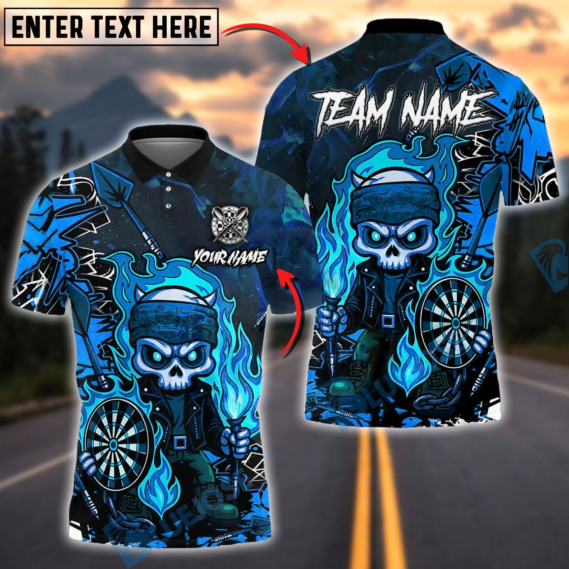 BlueJose Darts Flaming Skeleton Warrior Neon Customized Name, Team Name 3D Shirt (4 Colors)
