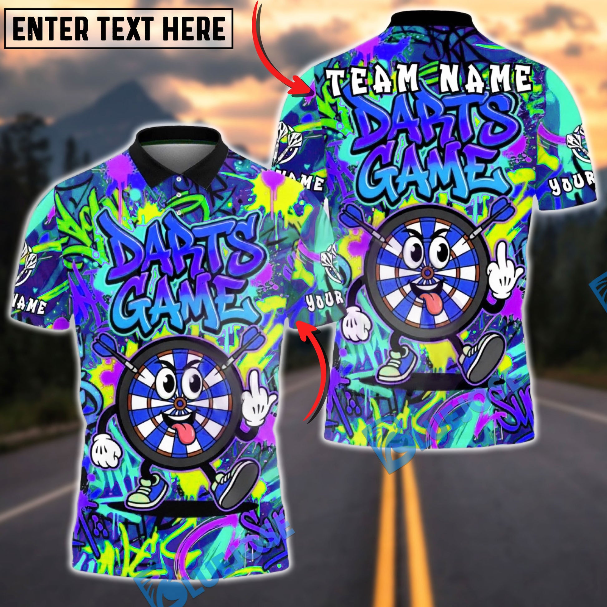 BlueJose Darts Game Dartboard Cartoon Graffiti Rainbow Multicolor Options Personalized Name Shirt (4 Colors)
