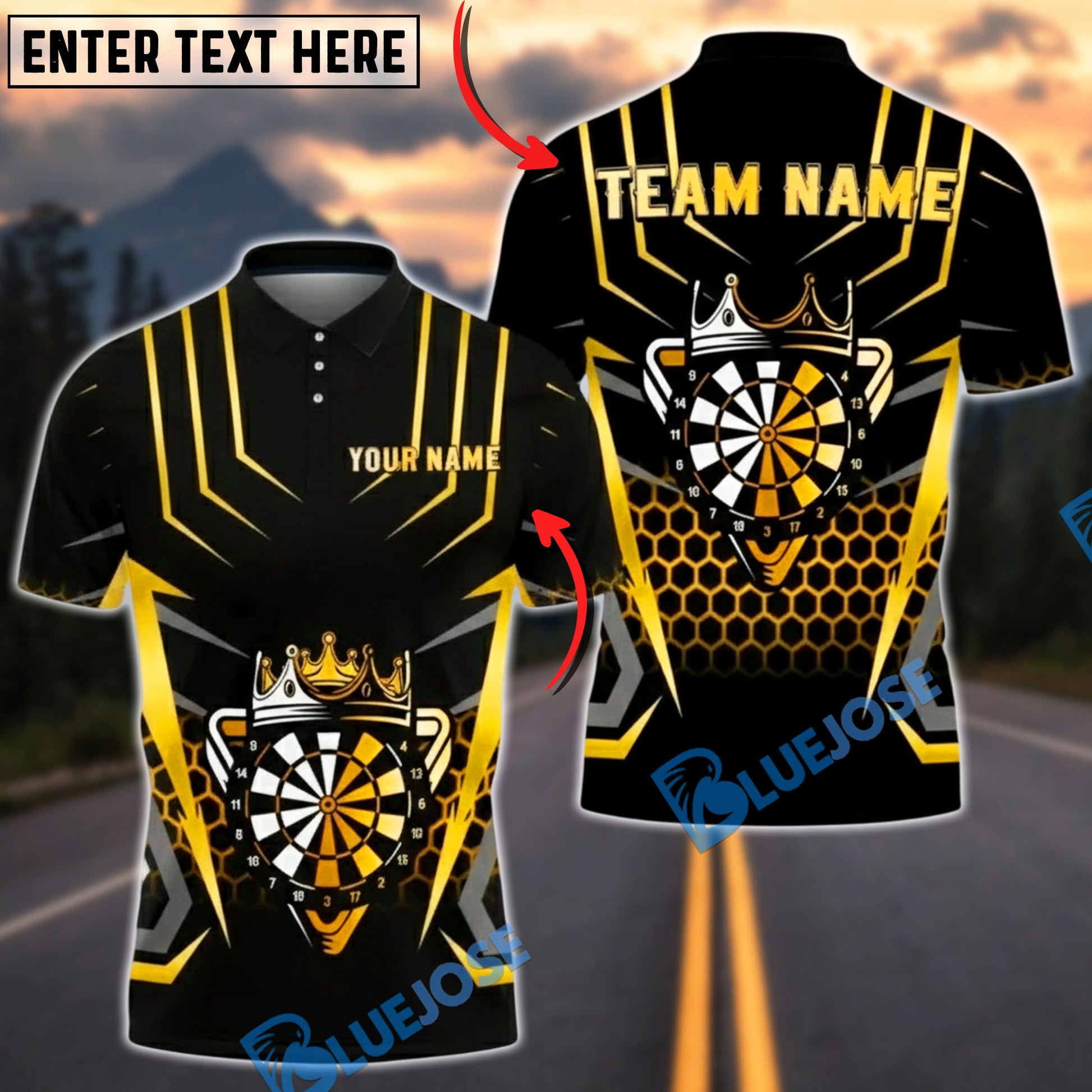 BlueJose Darts Gold Crown Target Honeycomb 3D Design Personalized Name, Team Name Unisex Shirt (6 Colors)