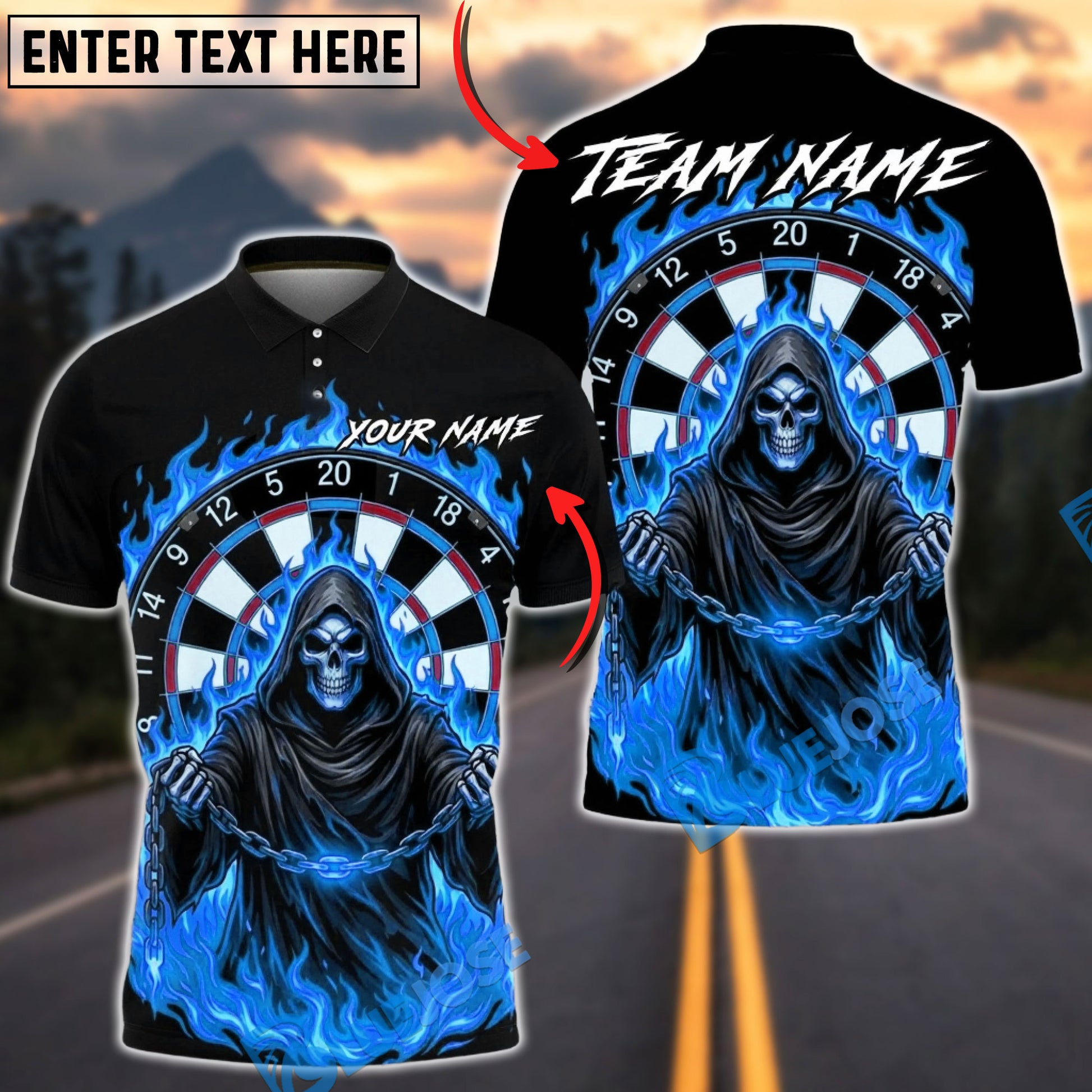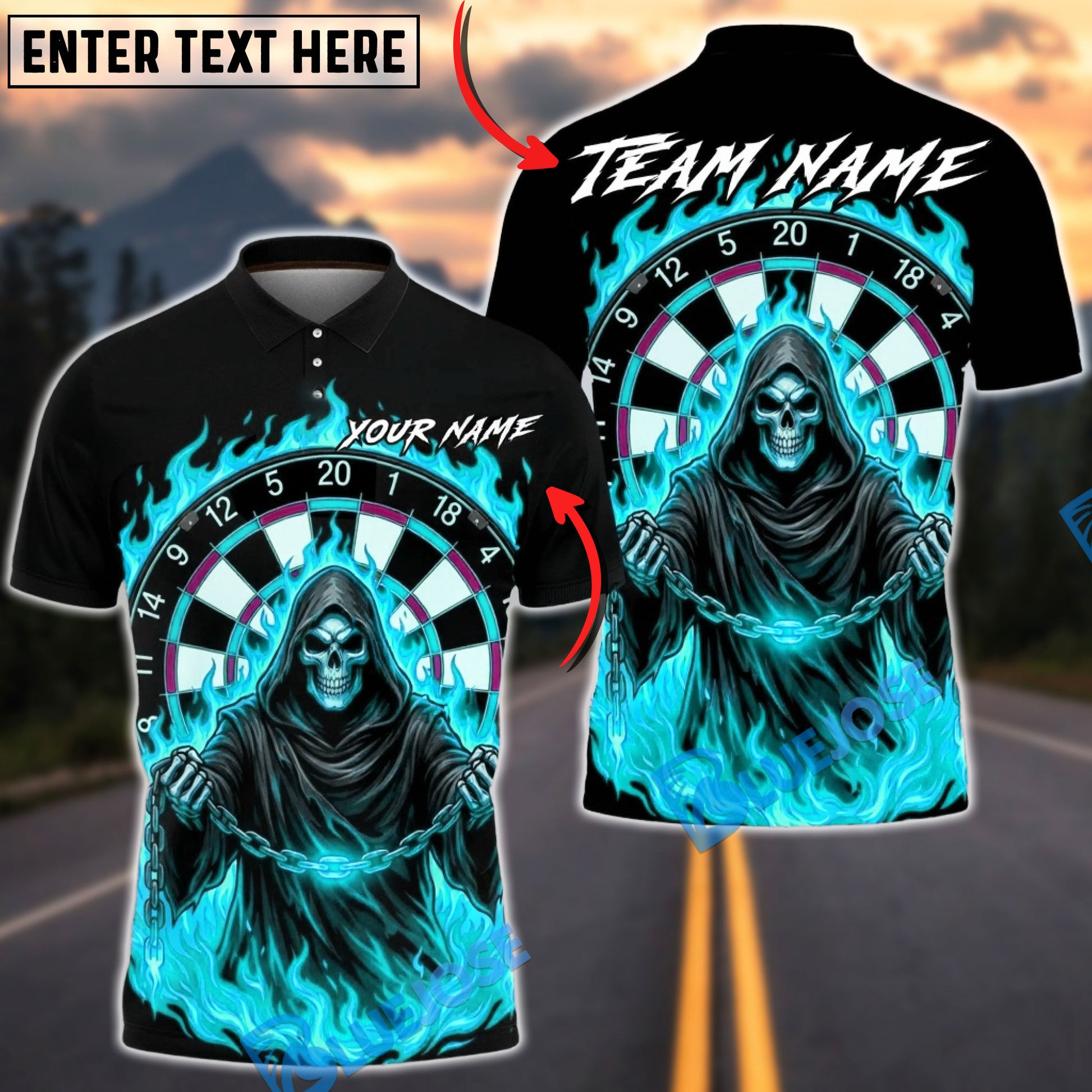BlueJose Darts Grim Reaper Fire Flame Multicolor Options Personalized Name Shirt (4 Colors)