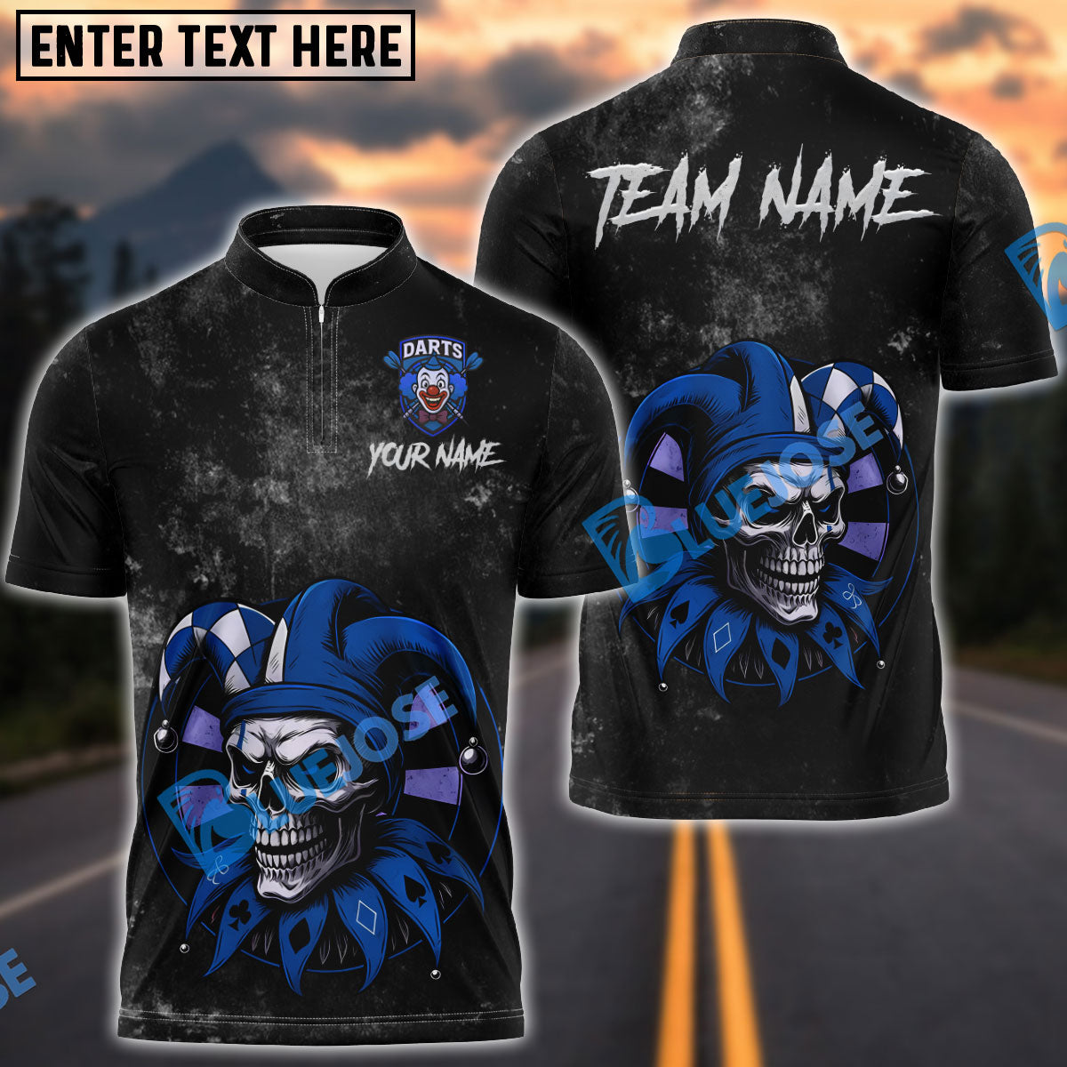 BlueJose Darts Joker Skull Master Personalized Name, Team Name Shirt (4 Colors)