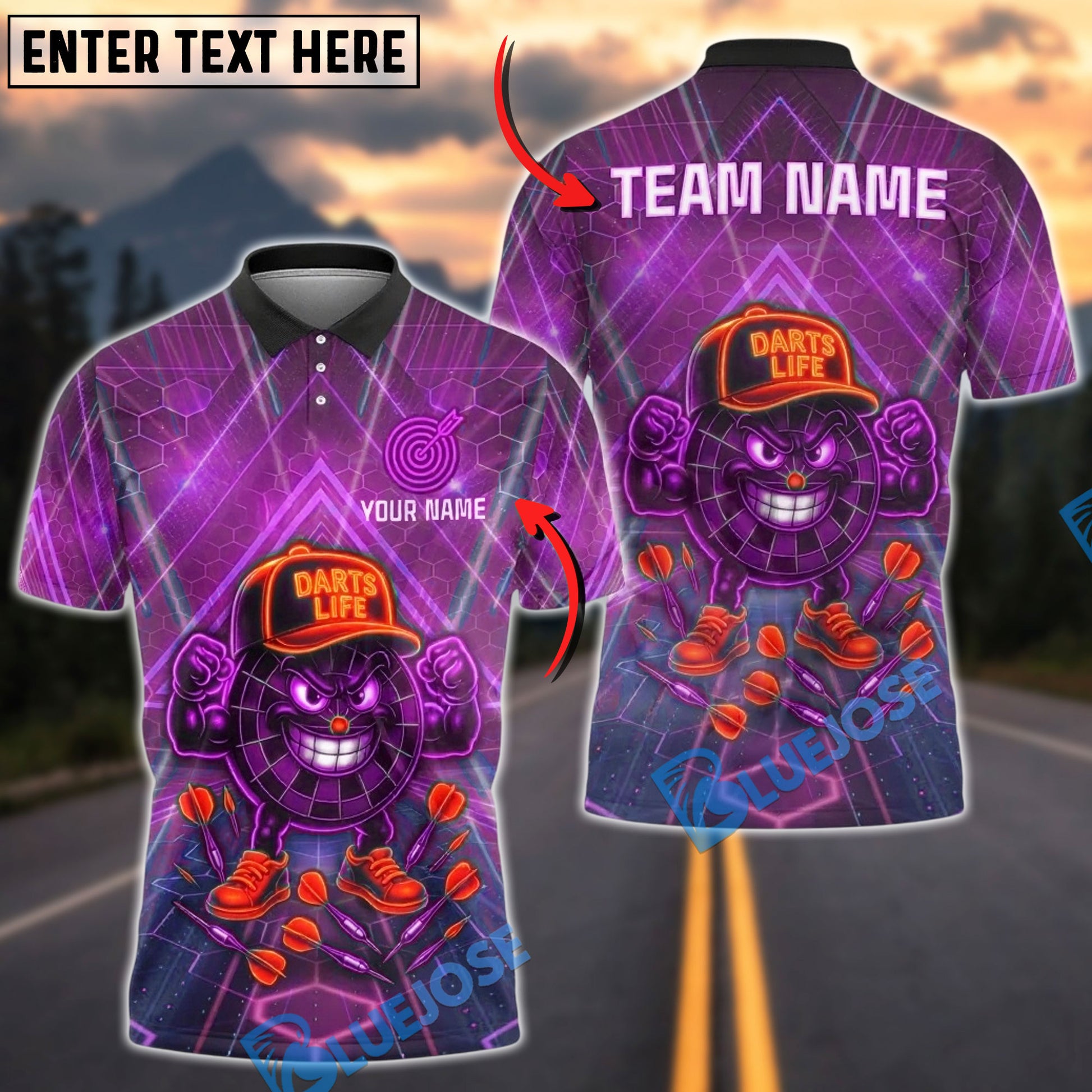 BlueJose Darts Life Neon Target Cartoon Customized Name, Team Name 3D Shirt (4 Colors)