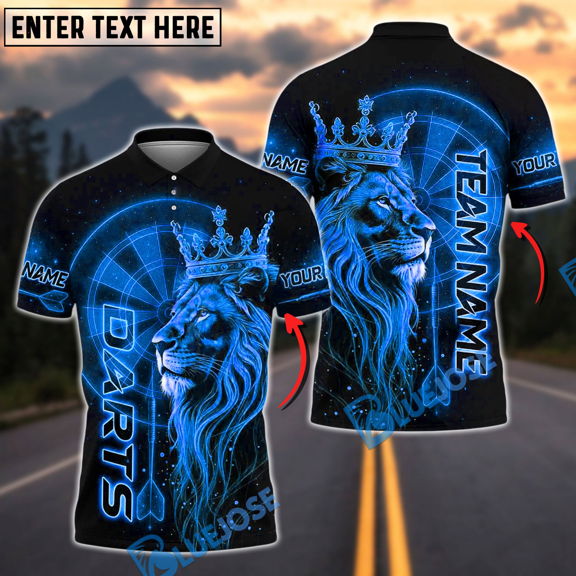 BlueJose Darts Lion King Crown Gold Customized Name, Team Name 3D Shirt (4 Colors)
