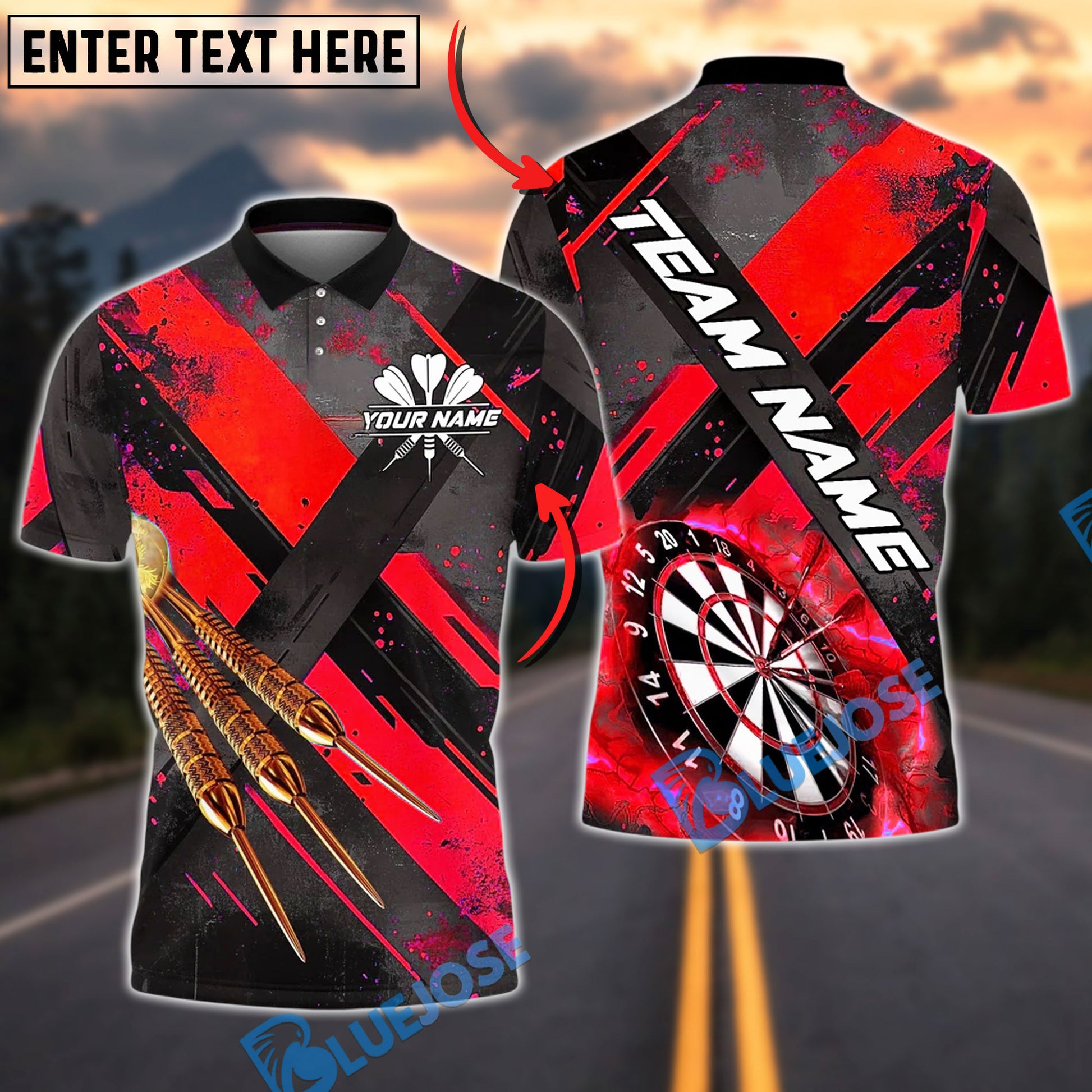 BlueJose Darts Modern Strike Pattern Lightning Board Customized Name, Team Name 3D Shirt (4 Colors)