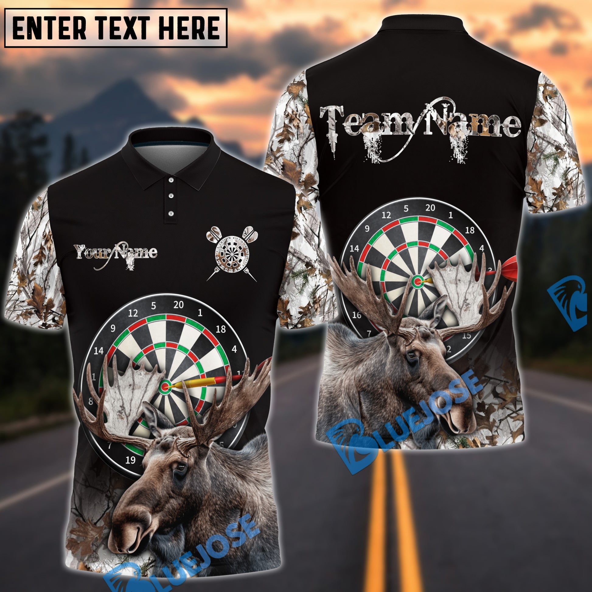 BlueJose Darts Moose Hunting Camo Multicolor Options Personalized Name Shirt (4 Colors)