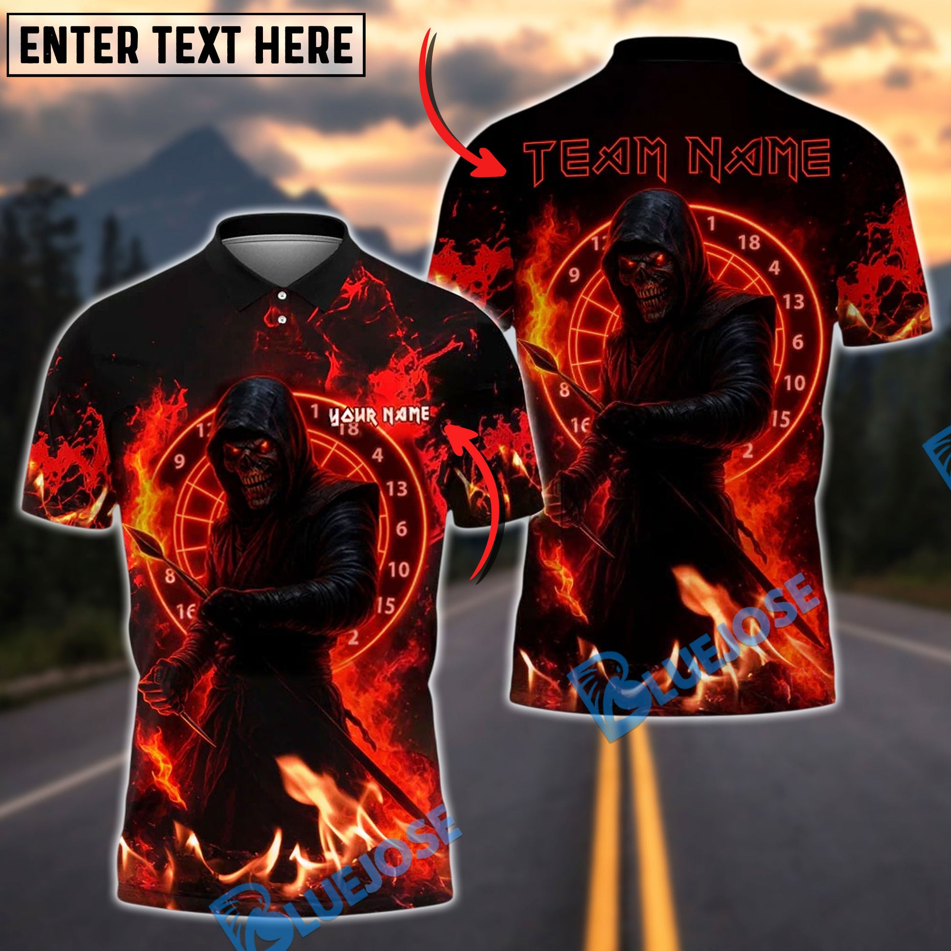 BlueJose Darts Reaper Fire Dark Hood Customized Name, Team Name 3D Shirt (4 Colors)