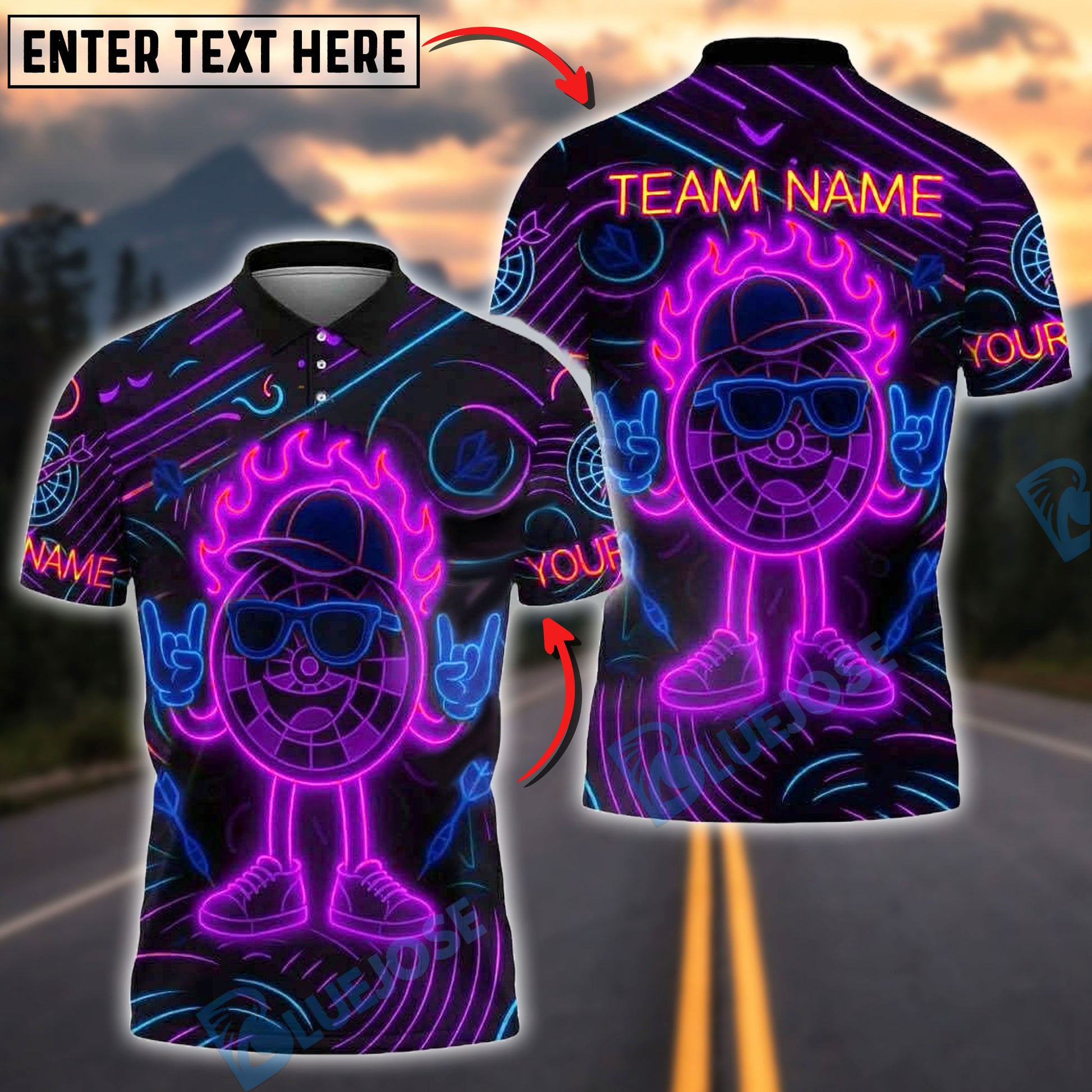 BlueJose Darts Rock n' Roll Flaming Neon Cool Design Customized Name, Team Name 3D Shirt (4 Colors)