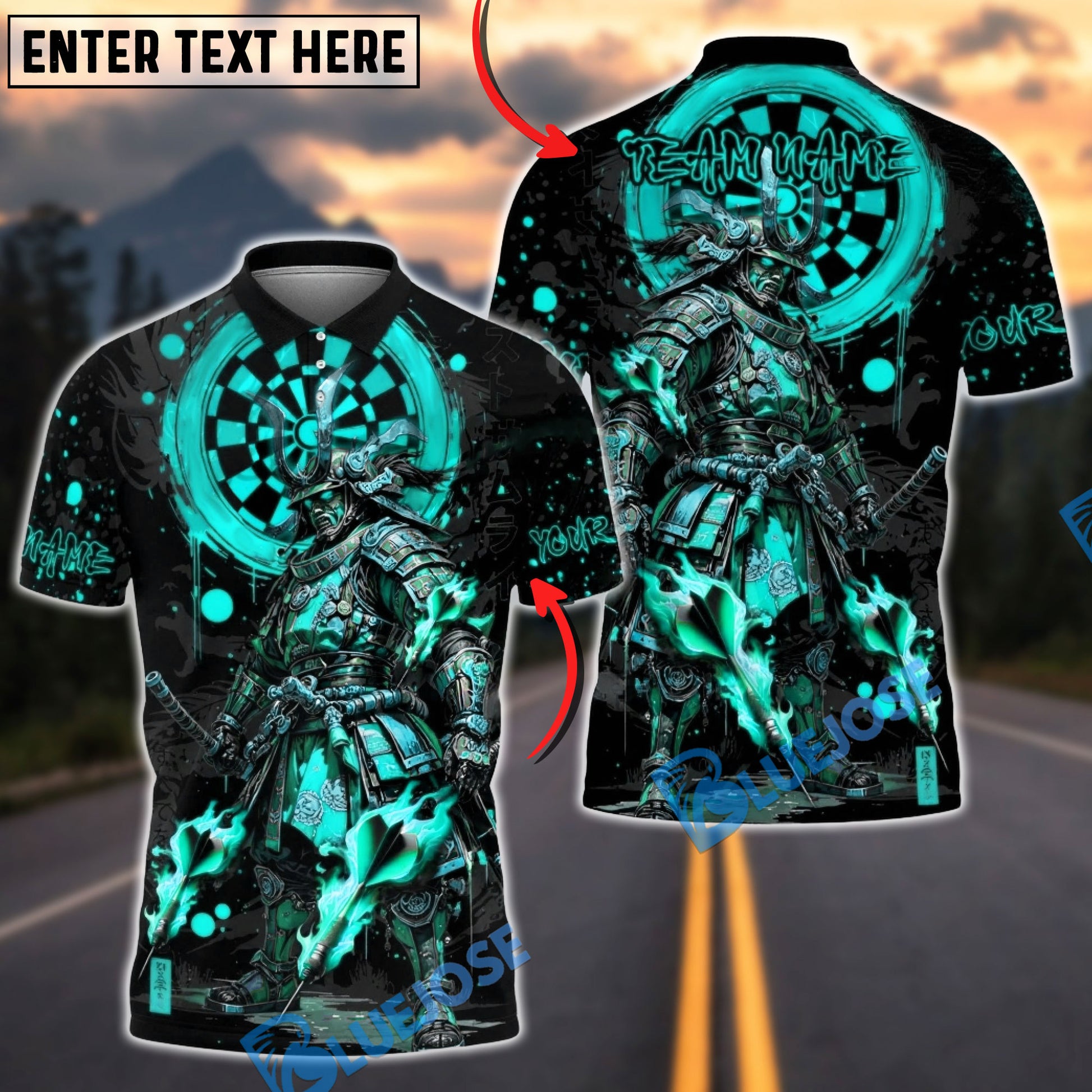 BlueJose Darts Samurai Warrior Target Pattern Multicolor Options Personalized Name Shirt (4 Colors)